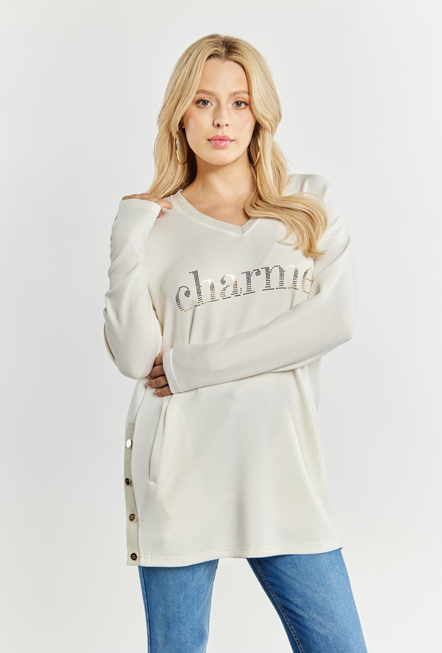 Bluza damska z ozdobnymi wstawkami