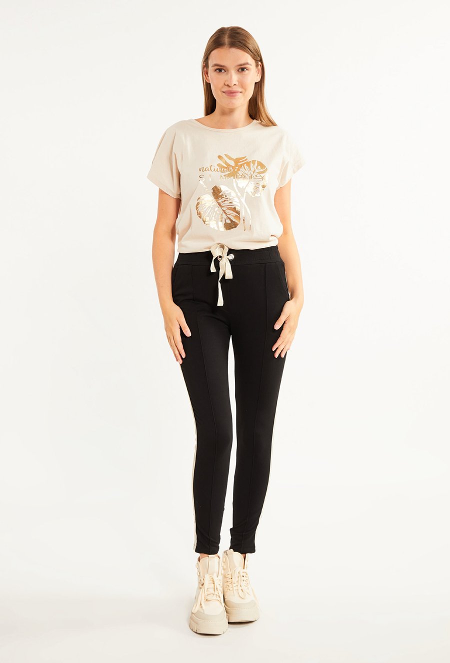 Dresowe spodnie damskie z tasiemkami