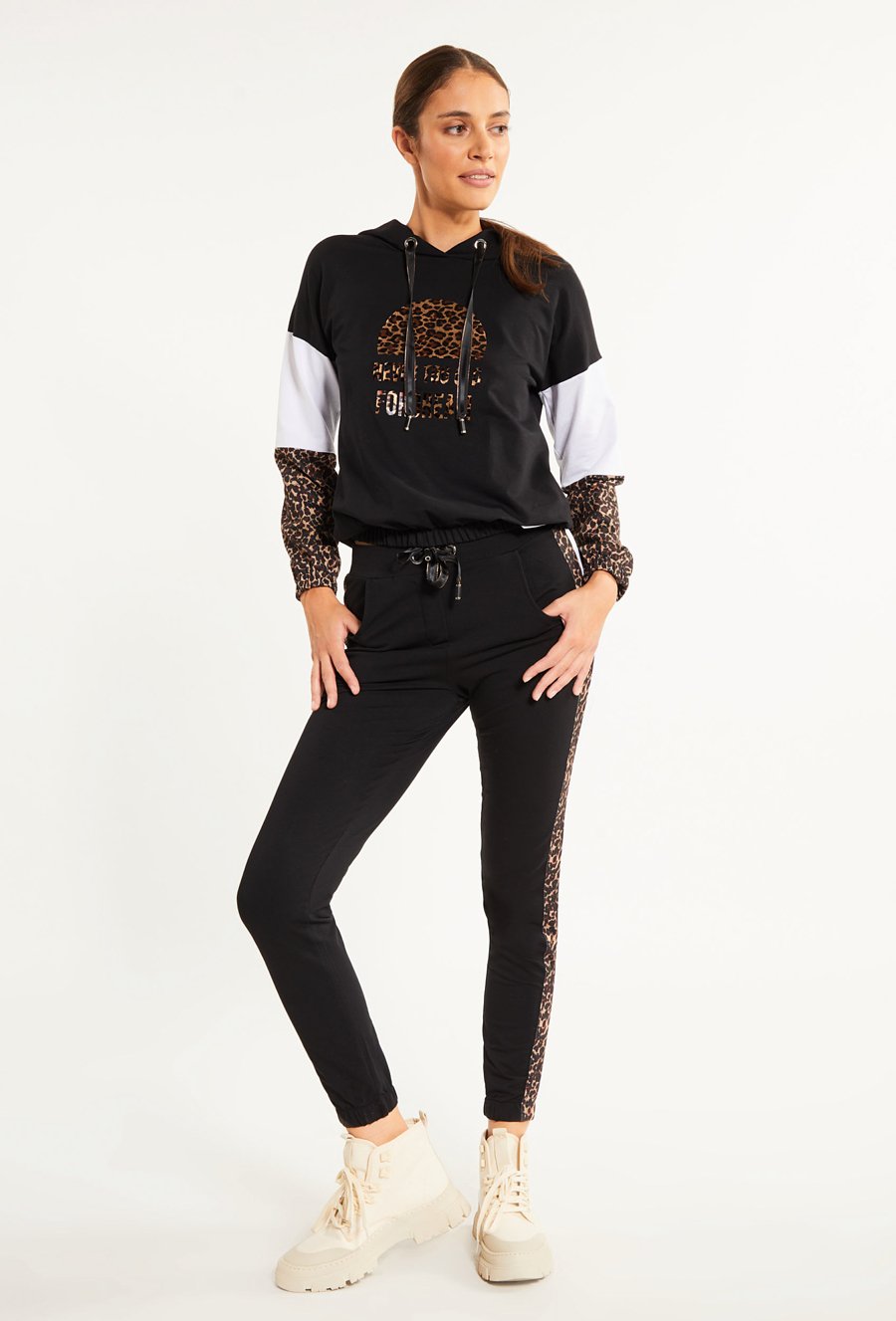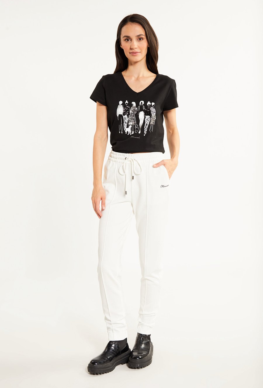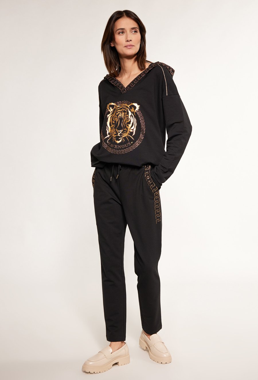 Dresowe spodnie damskie z dżetową aplikacją