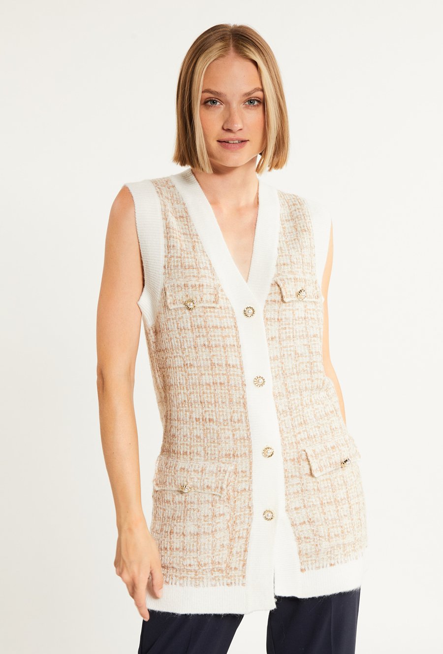 Swetrowa kamizelka z biżuteryjnymi guzikami