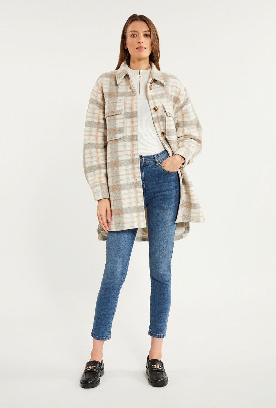 Koszulowa kurtka z wzorem w kratę