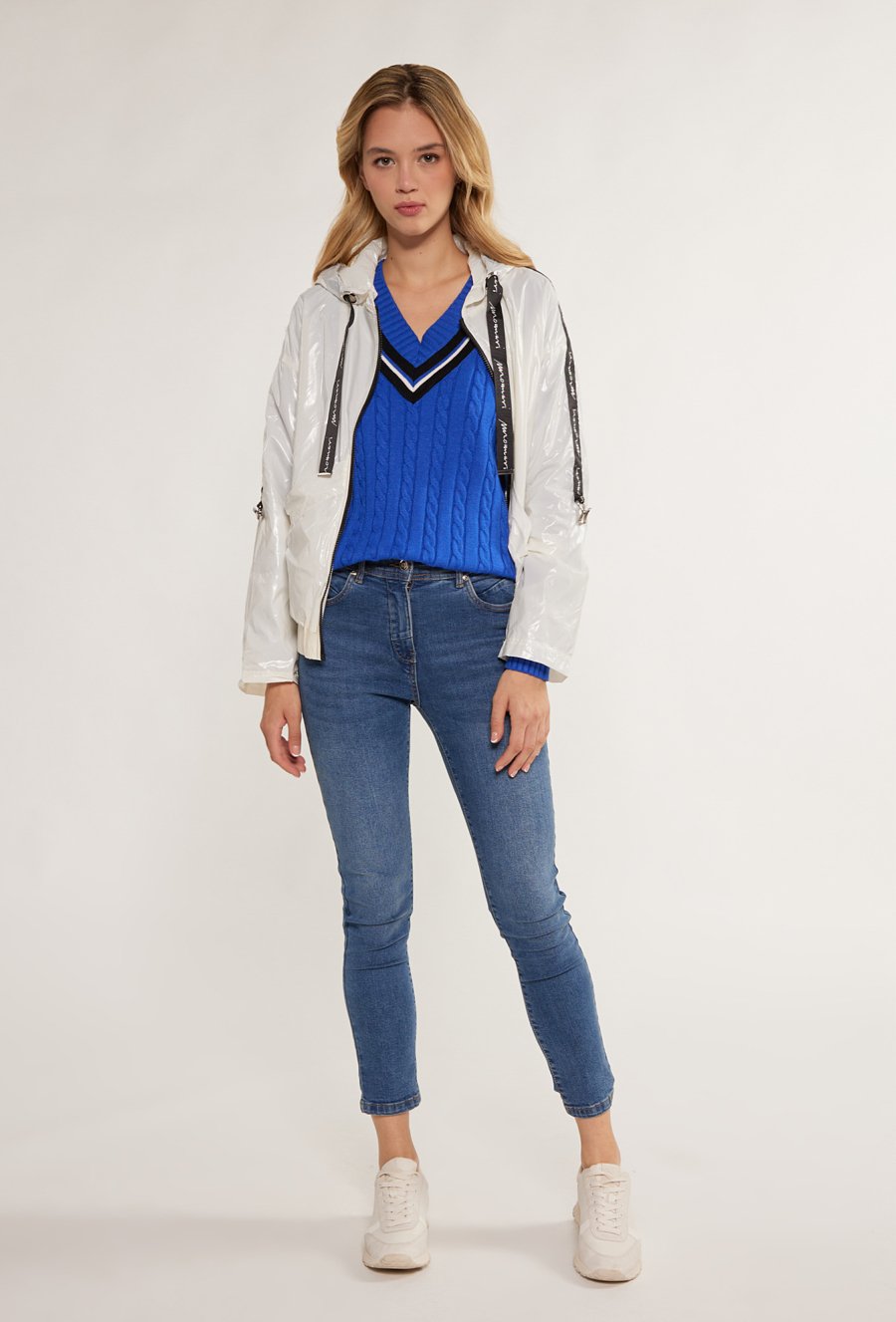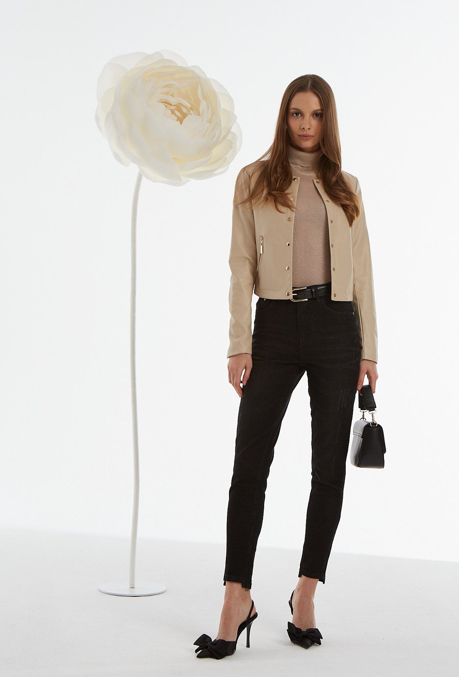 Krótka kurtka z ozdobnym wykończeniem