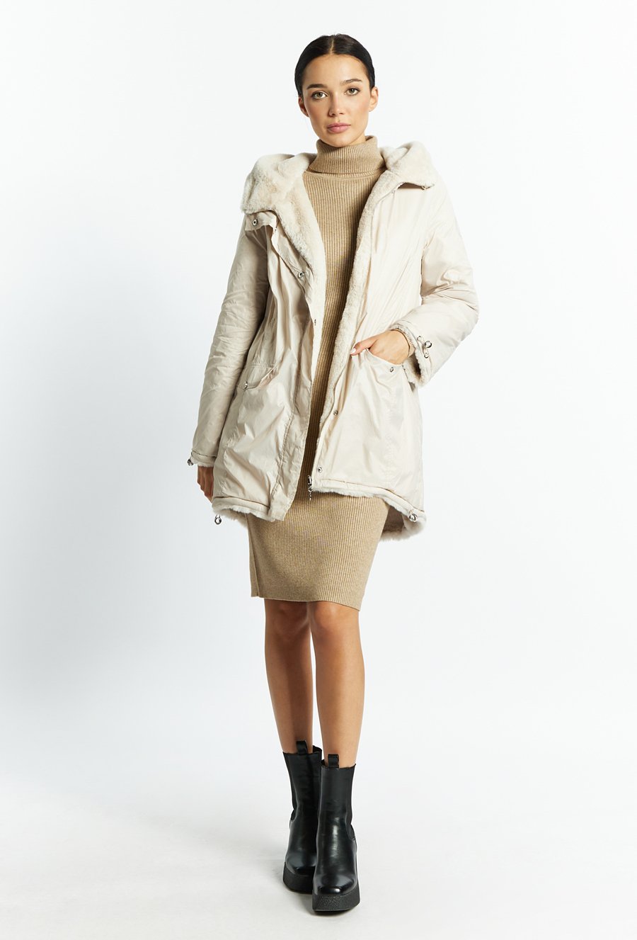 Długa kurtka z kożuchem