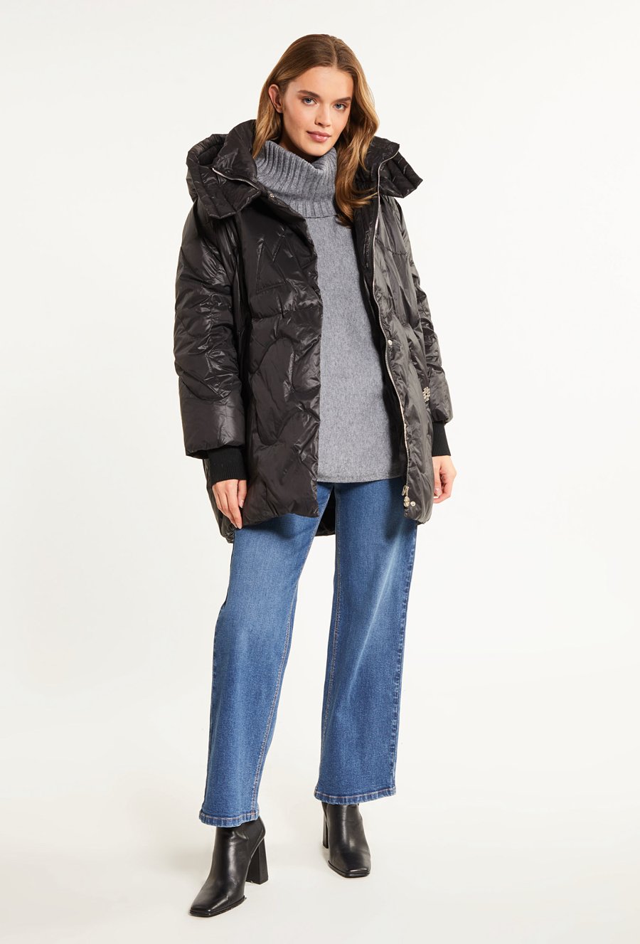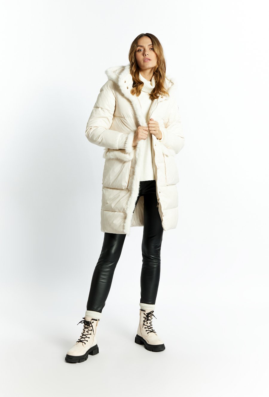 Puchowy płaszcz damski z kapturem