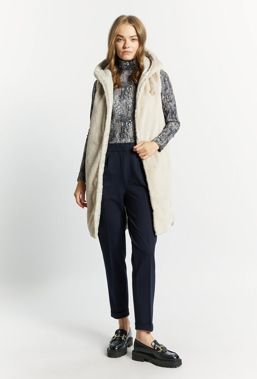 Dzianinowa kamizelka z kapturem