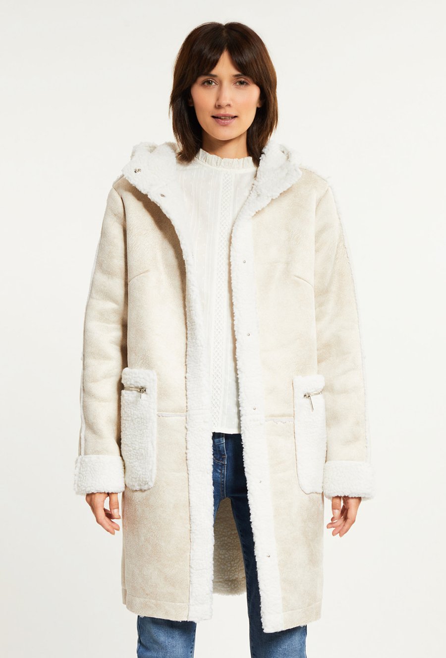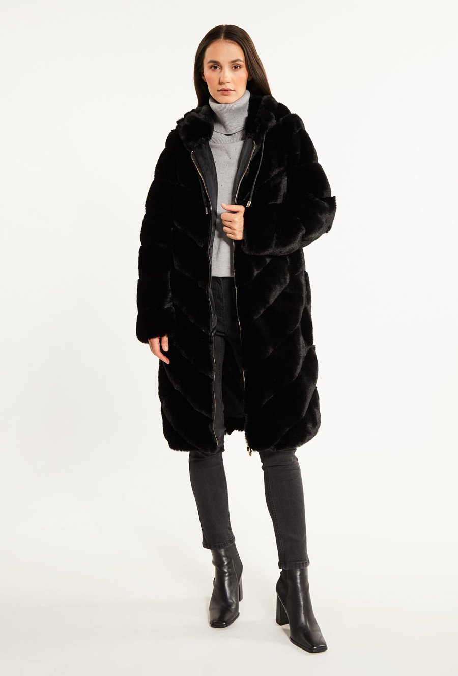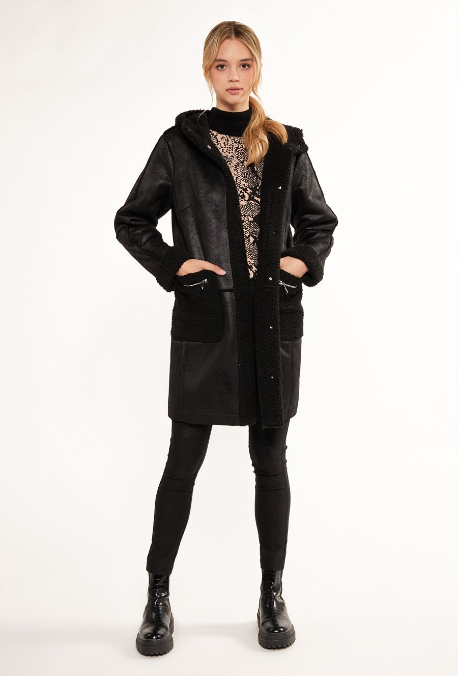 Płaszcz ze sztucznego futerka z kapturem