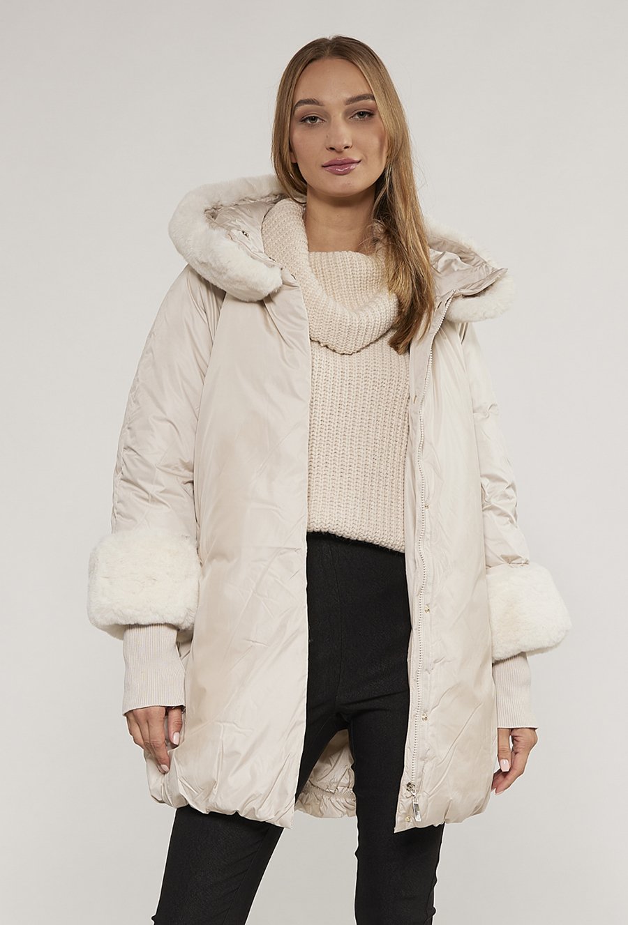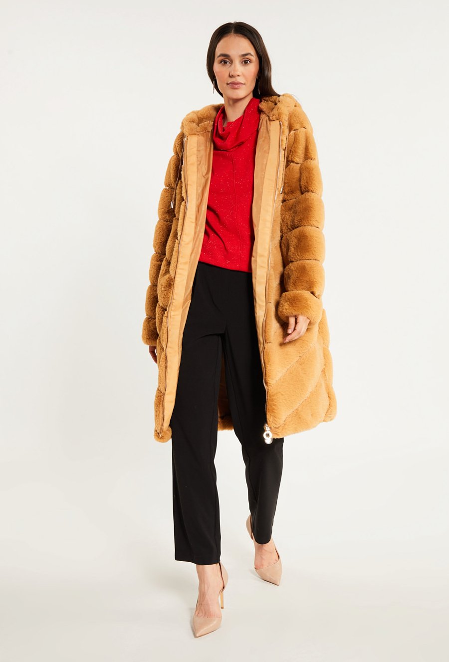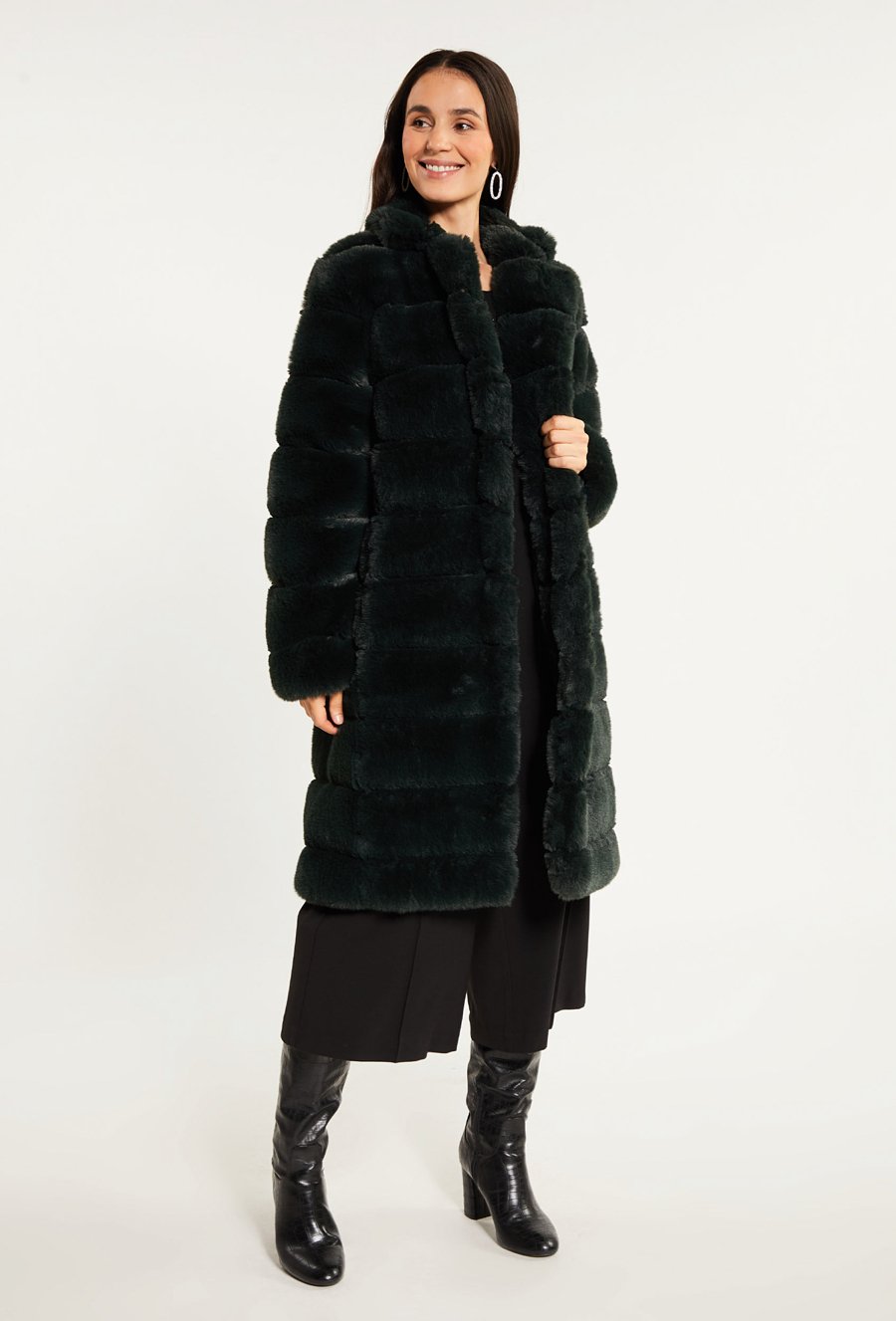 Płaszcz ze sztucznego futerka z kapturem