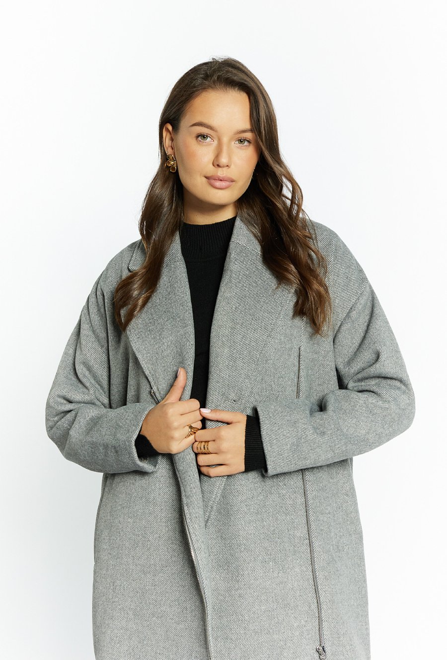 Płaszcz damski o luźnym kroju
