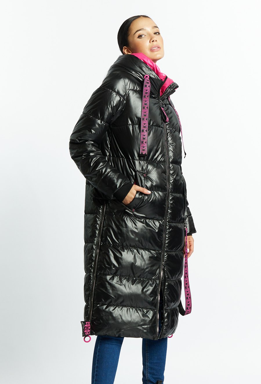 Pikowany płaszcz z kapturem