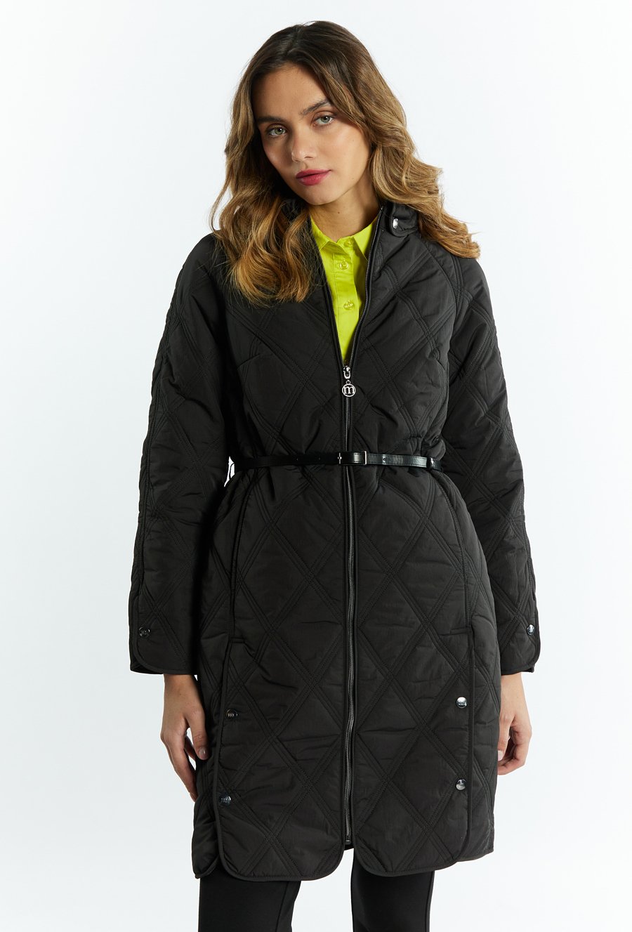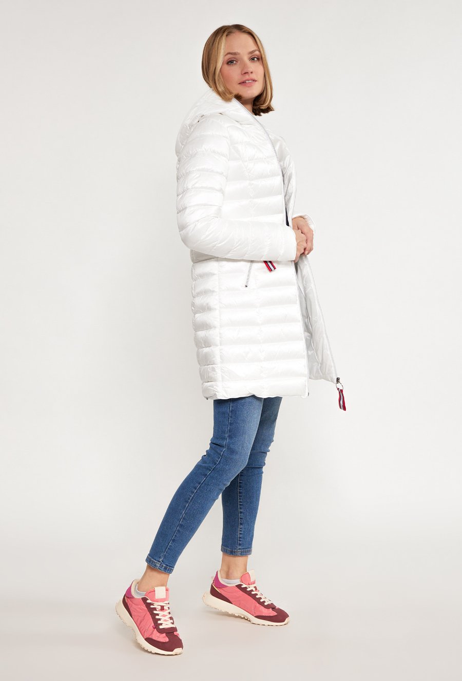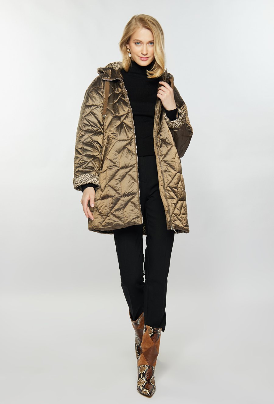 Pikowany płaszcz damski z kapturem