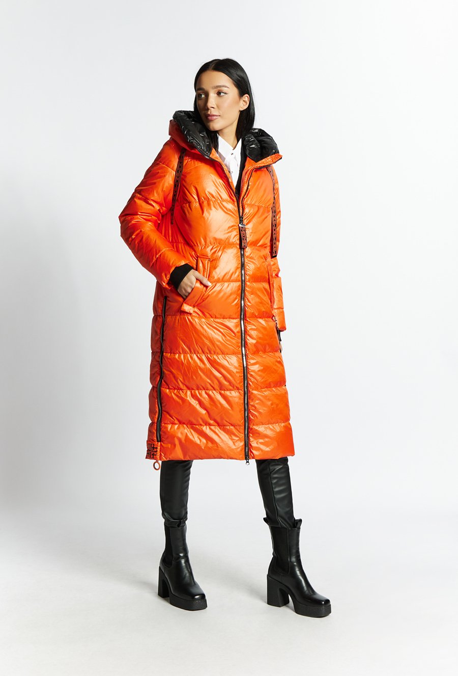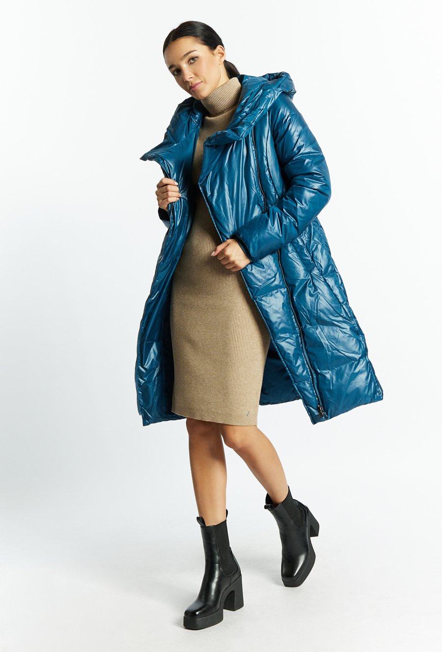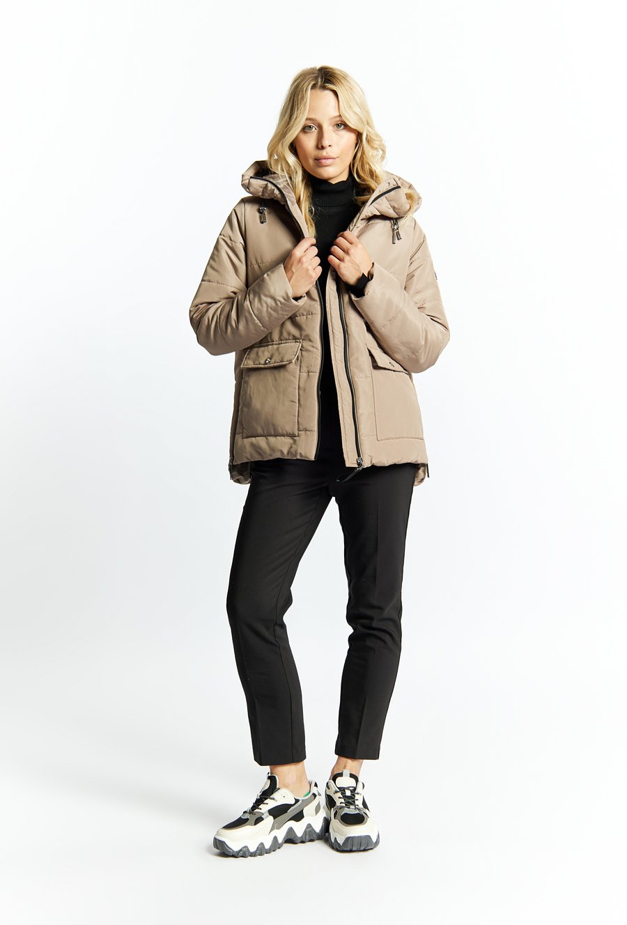 Pikowany płaszcz damski z kapturem