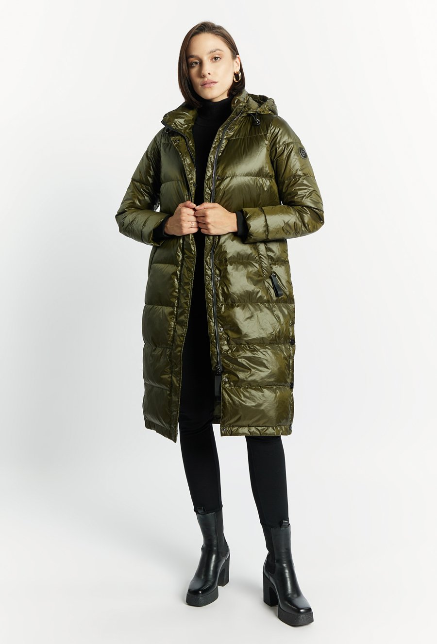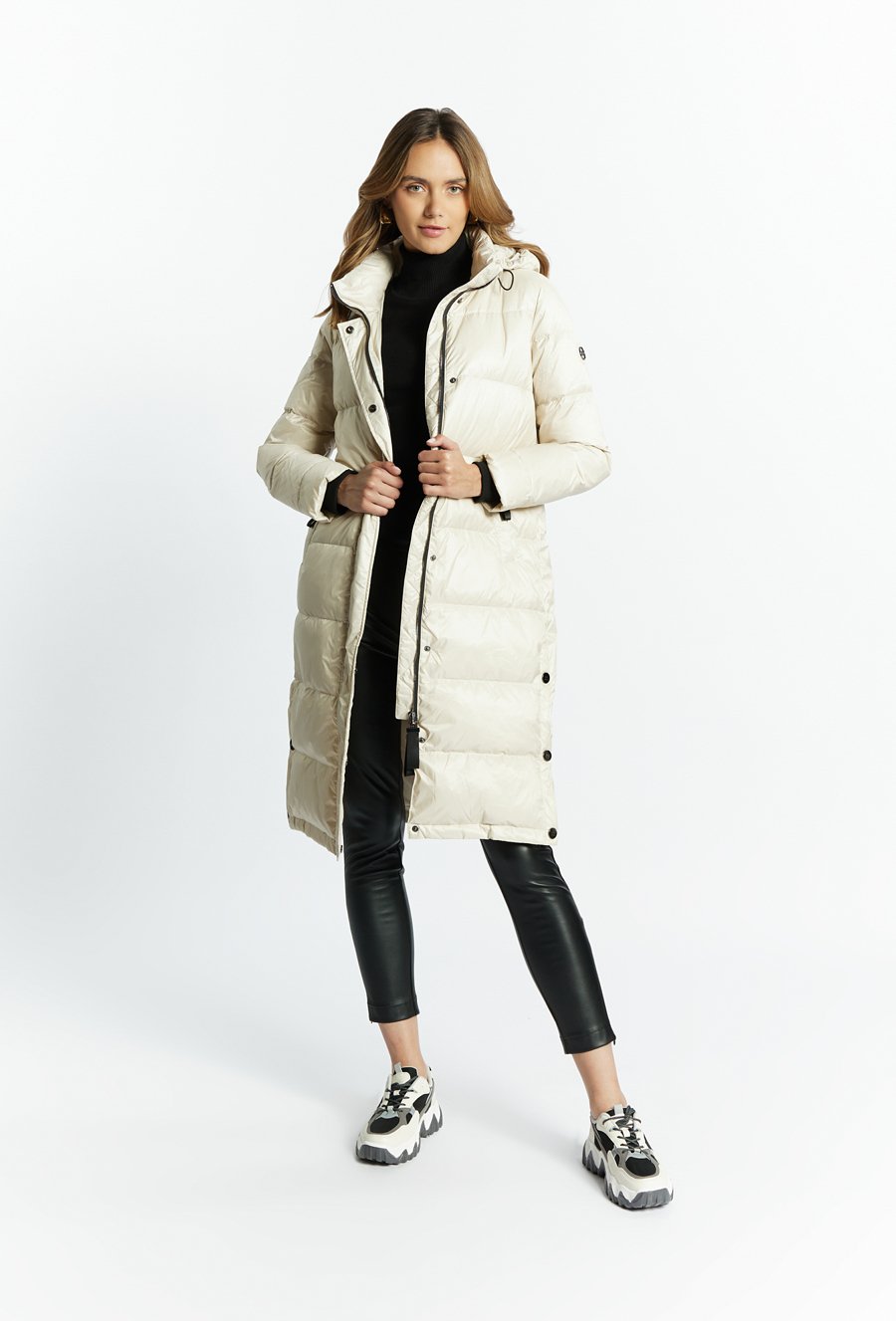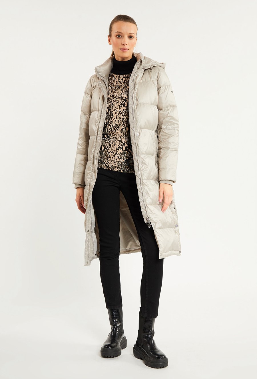 Puchowy płaszcz z kapturem
