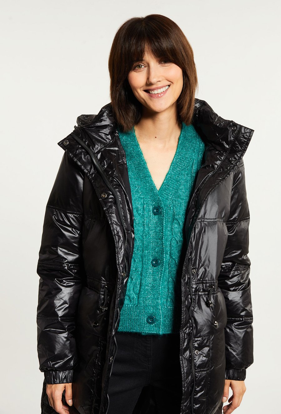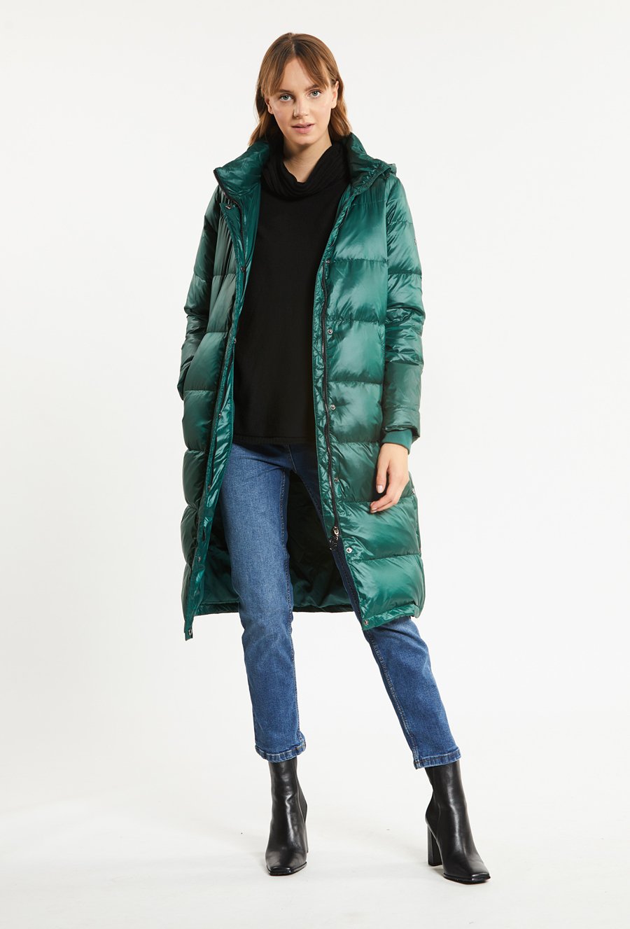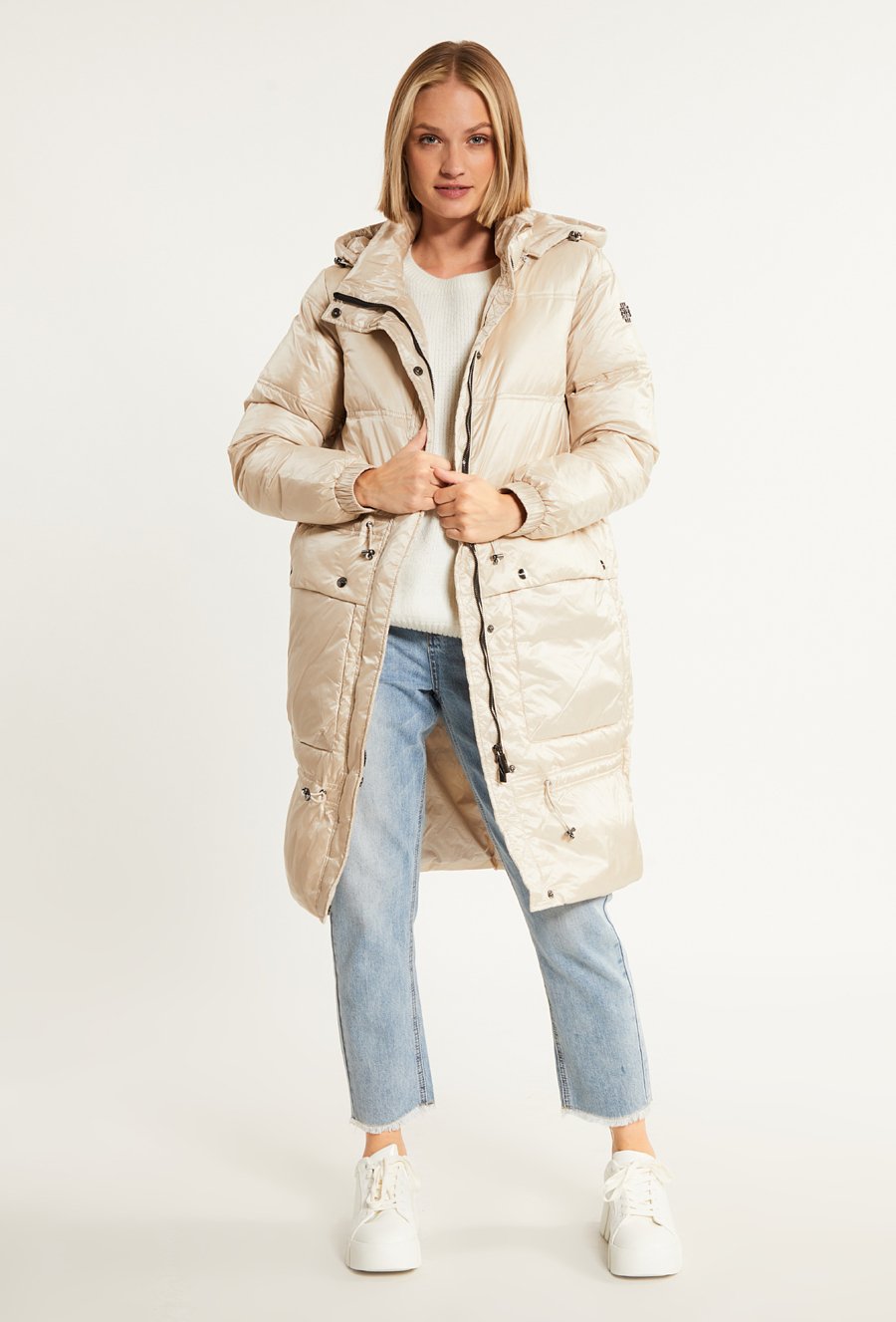 Puchowy płaszcz z kapturem