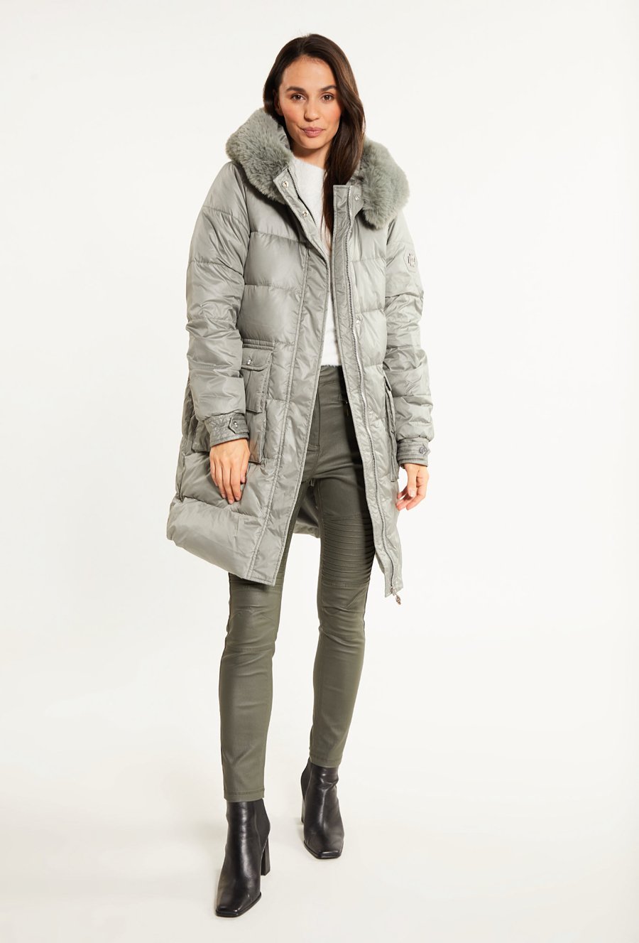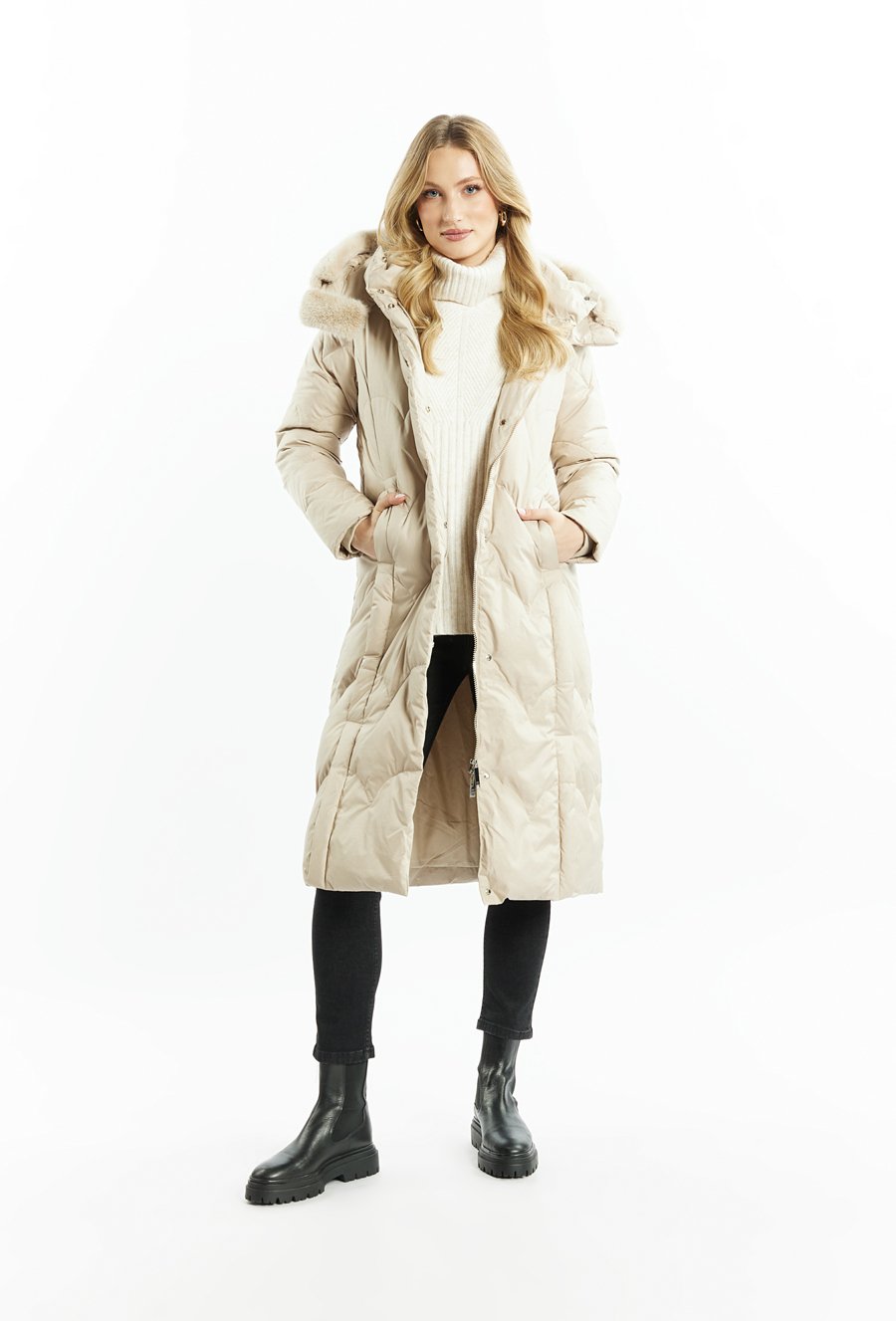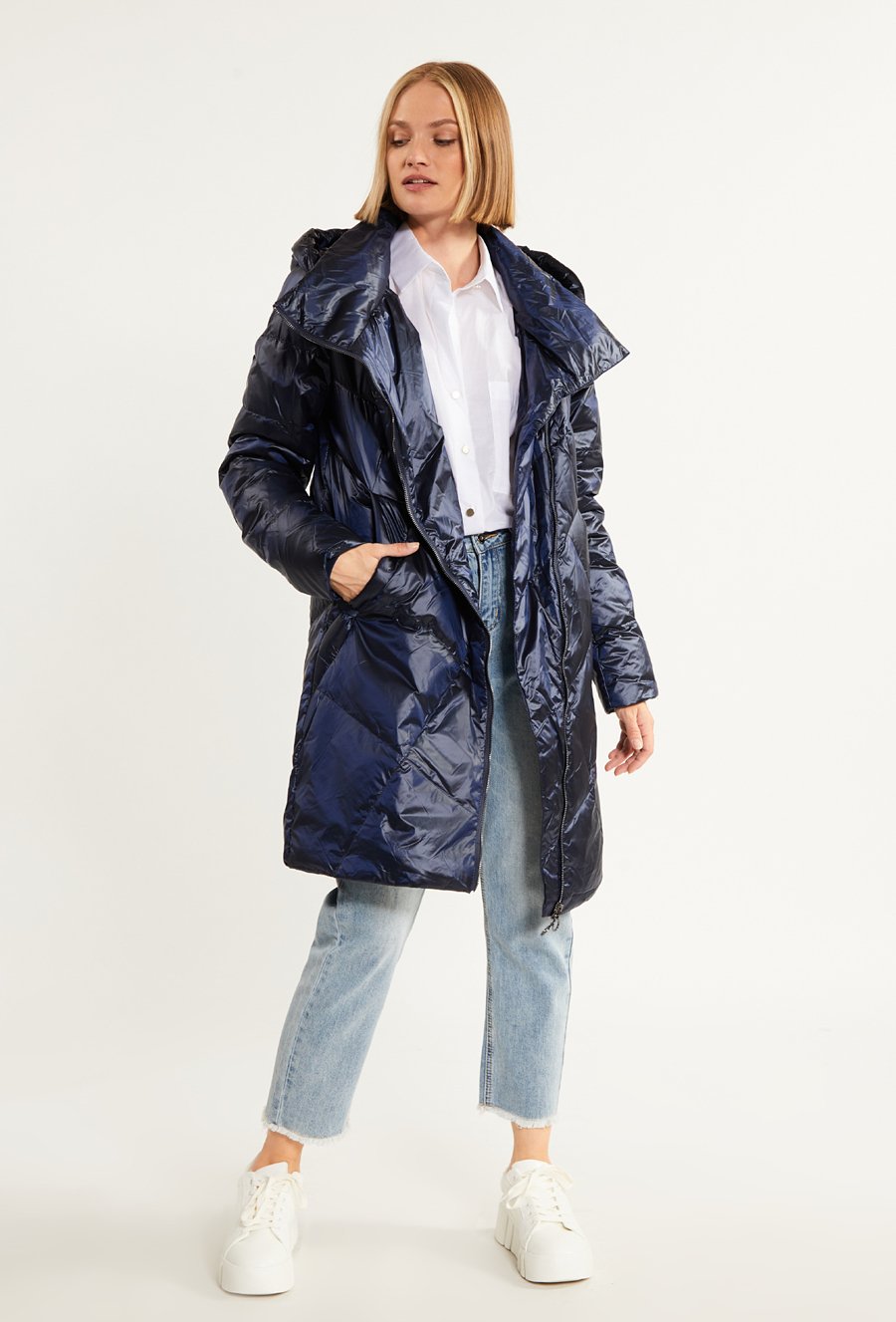 Puchowy płaszcz z podwójnymi kieszonkami