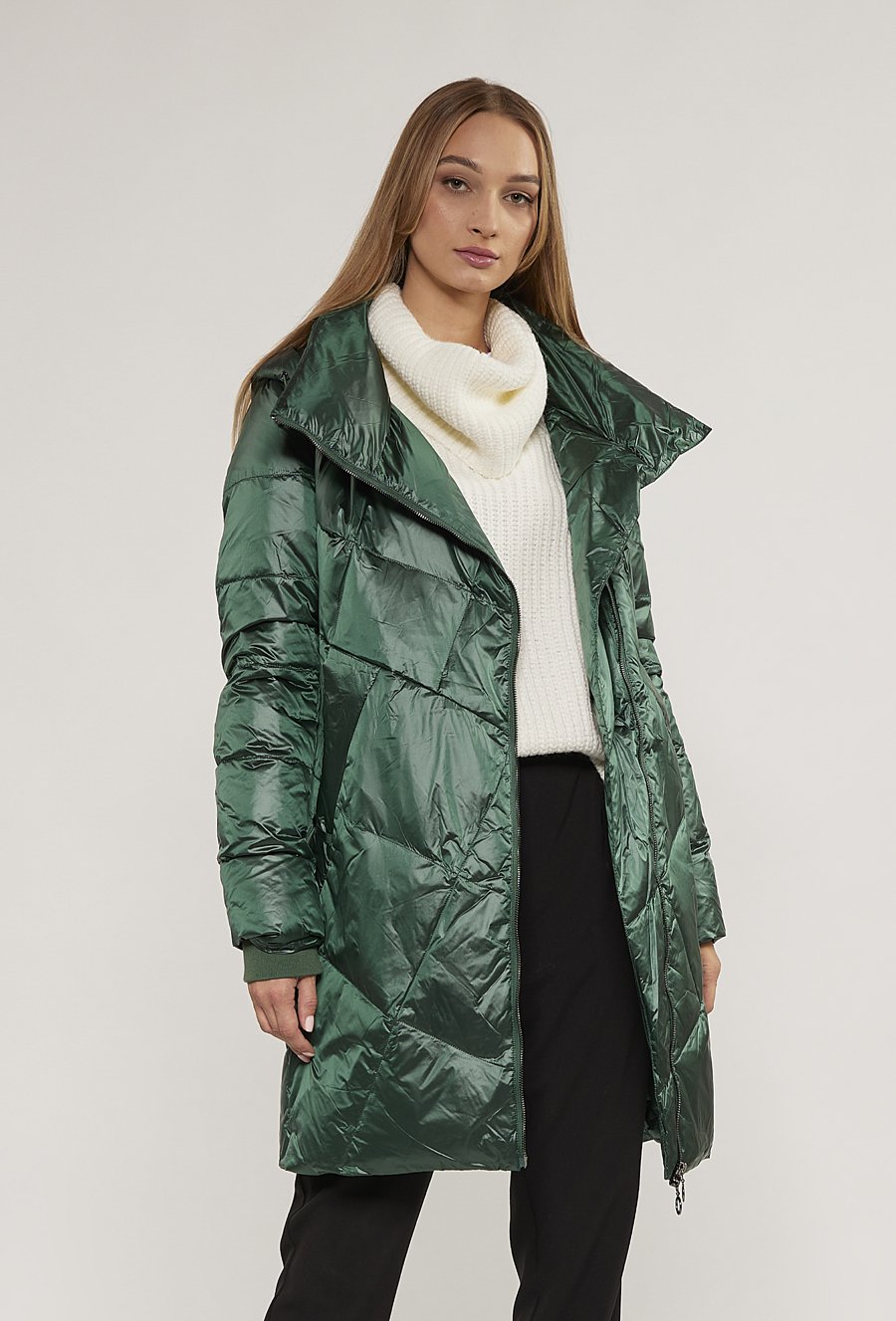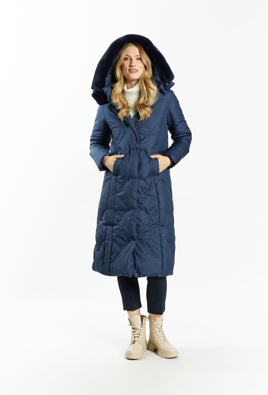 Puchowy płaszcz damski z pikowaniem