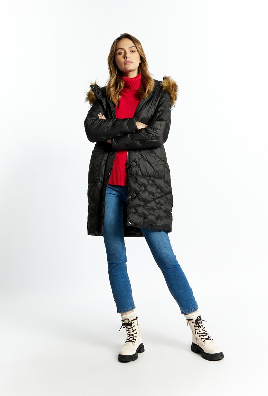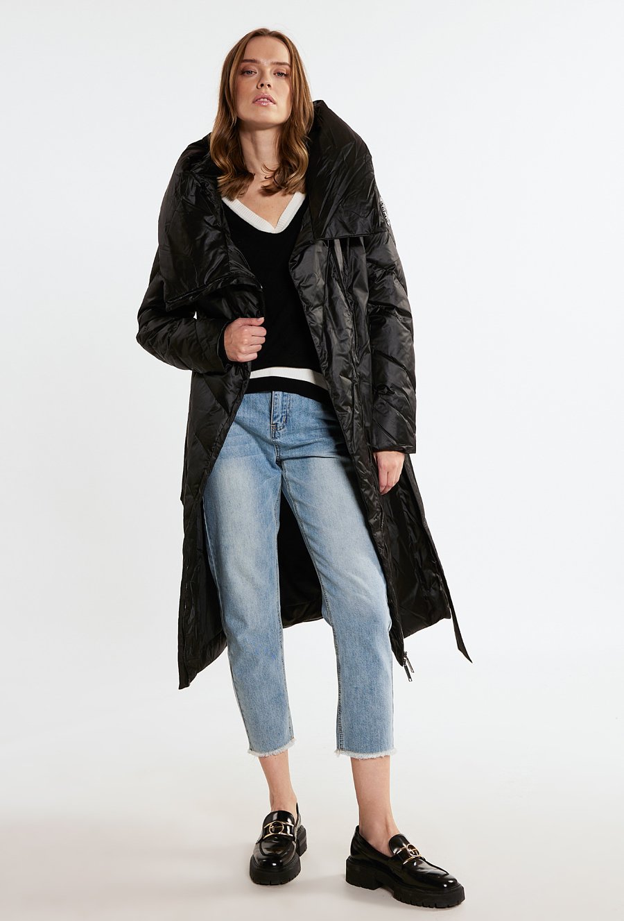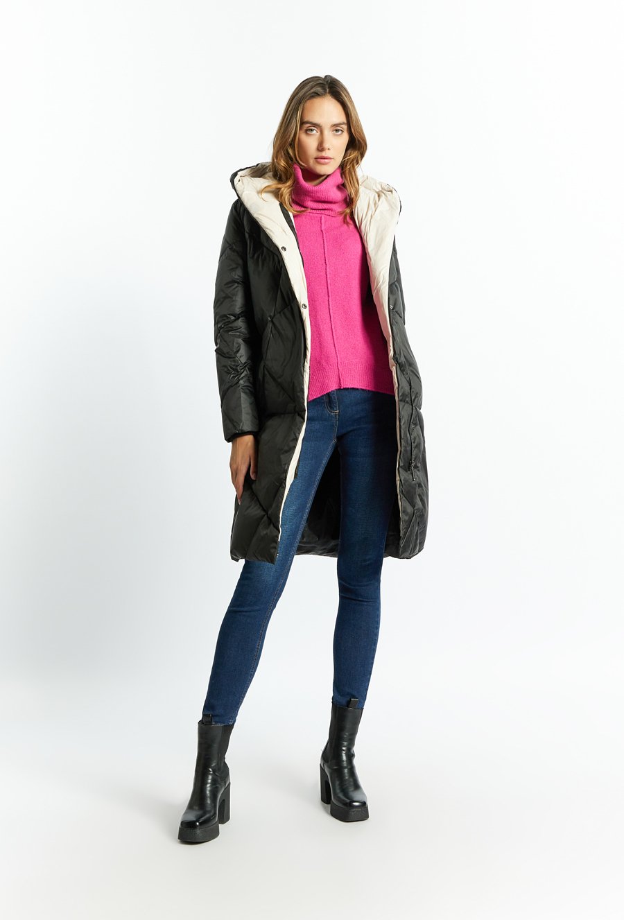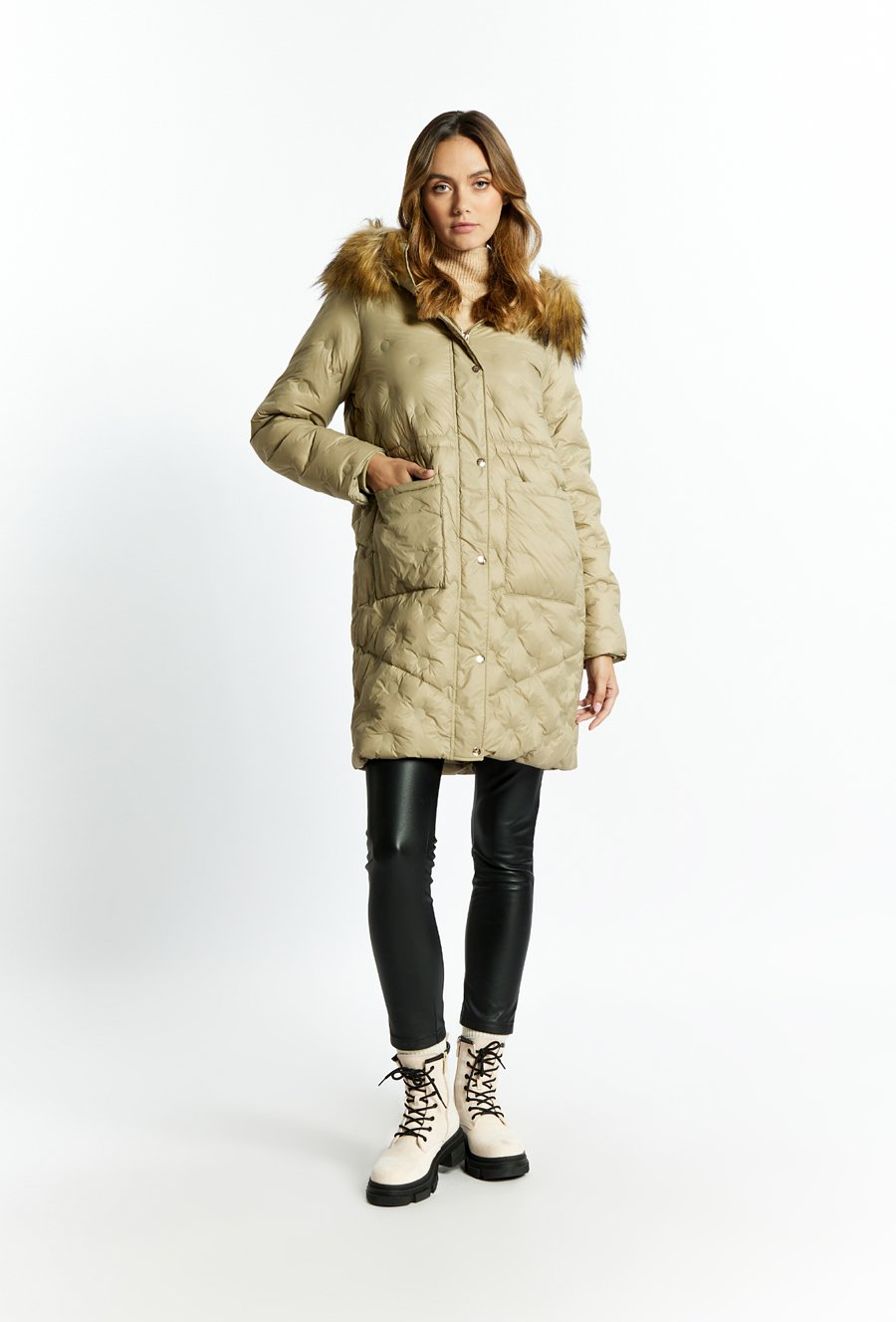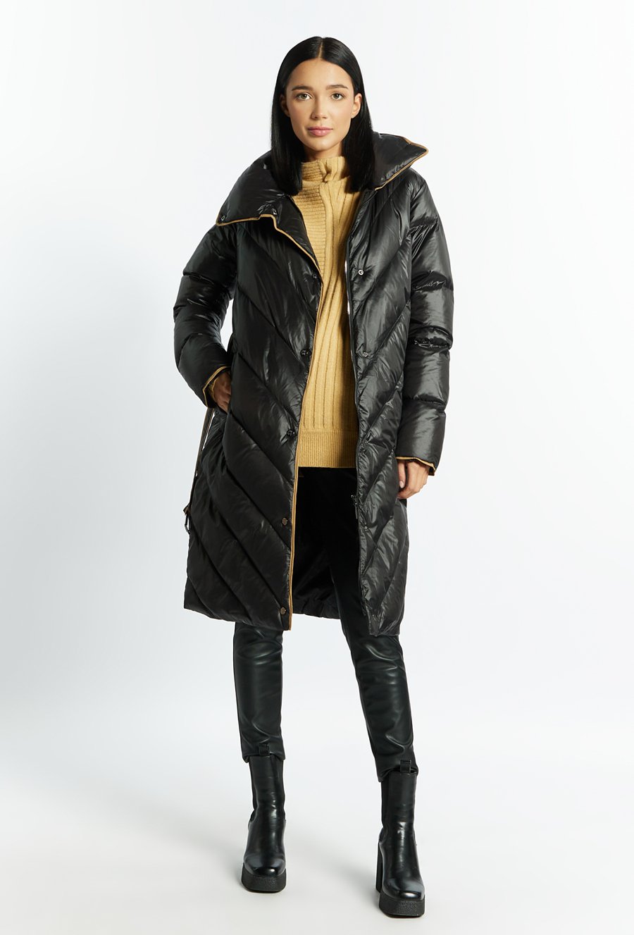 Puchowy płaszcz z pikowaniem