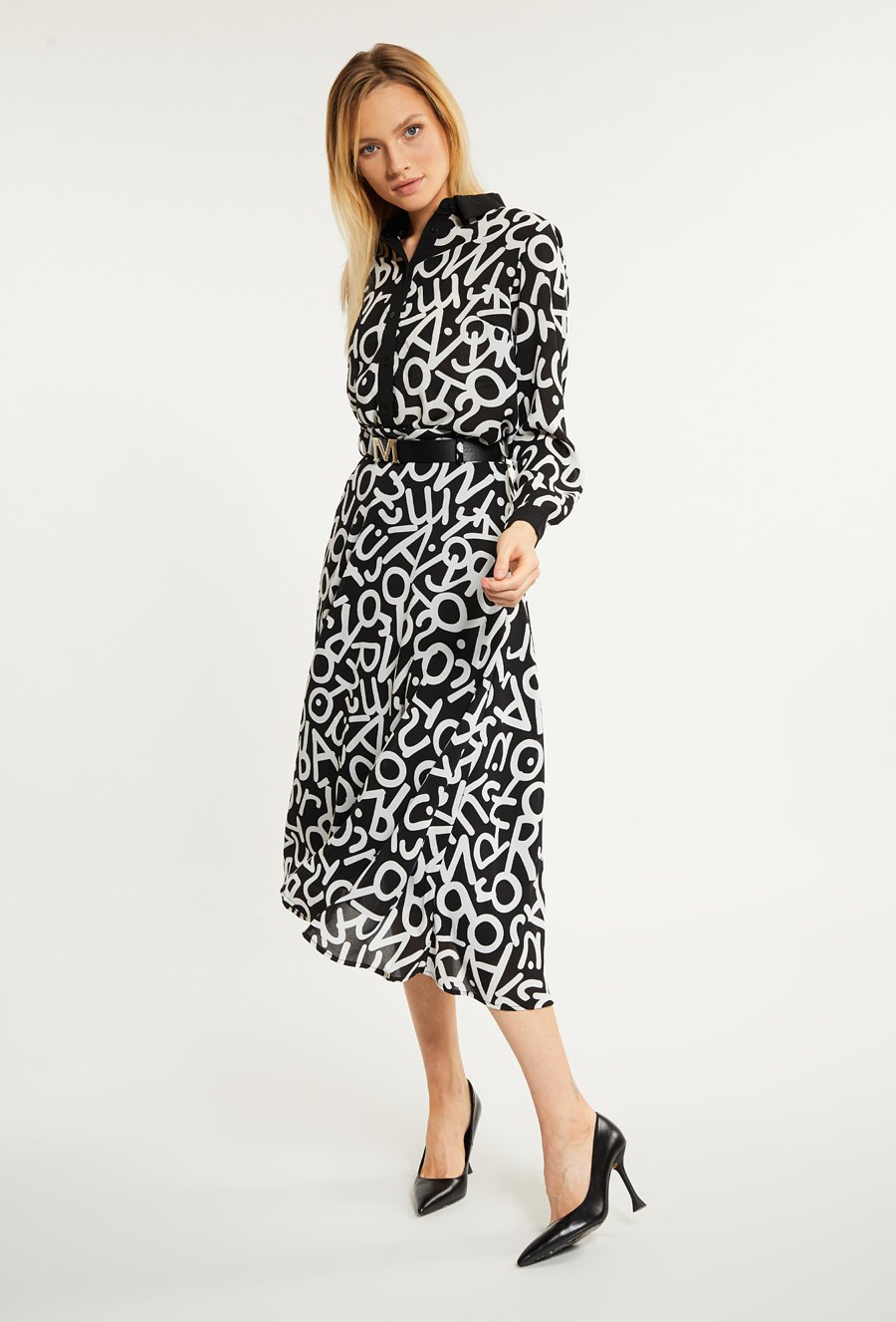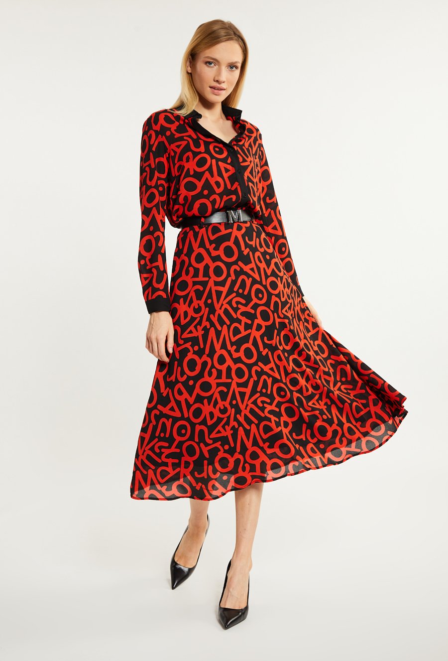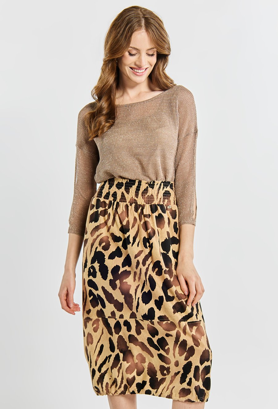 Wzorzysta spódnica midi z paskiem