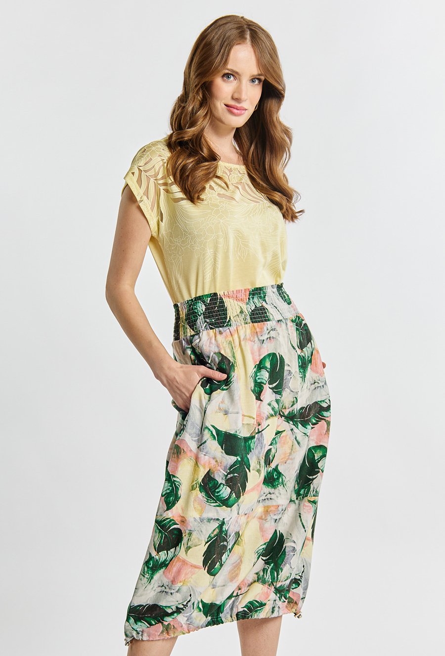 Spódnica damska z domieszką lnu