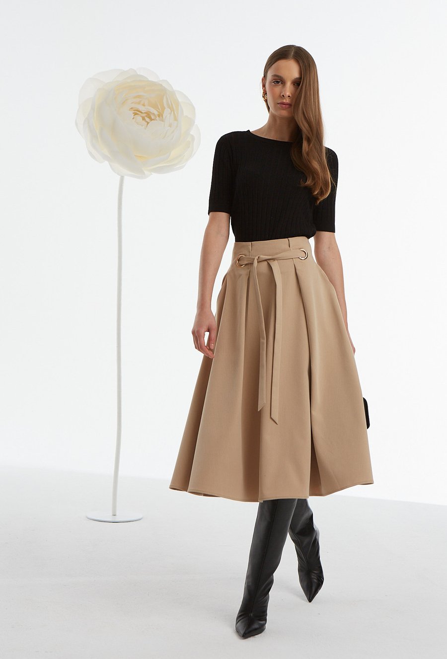 Rozkloszowana spódnica z ozdobnym paskiem