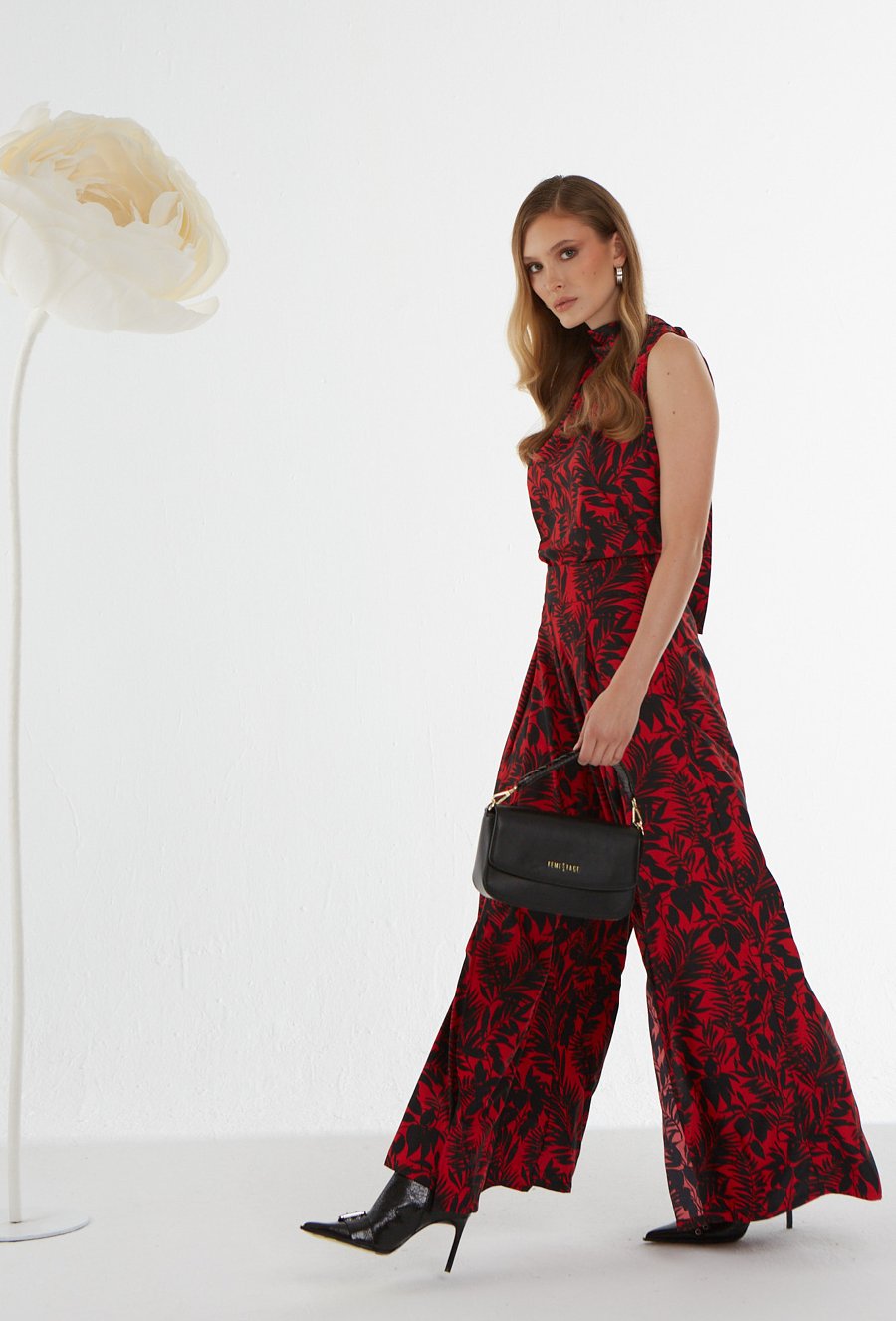 Czerwone spodnie z szeroką nogawką