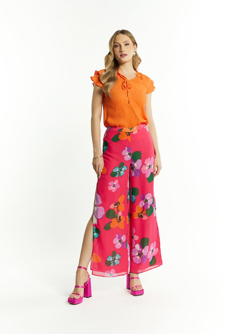 Szerokie spodnie z rozcięciem na nogawce