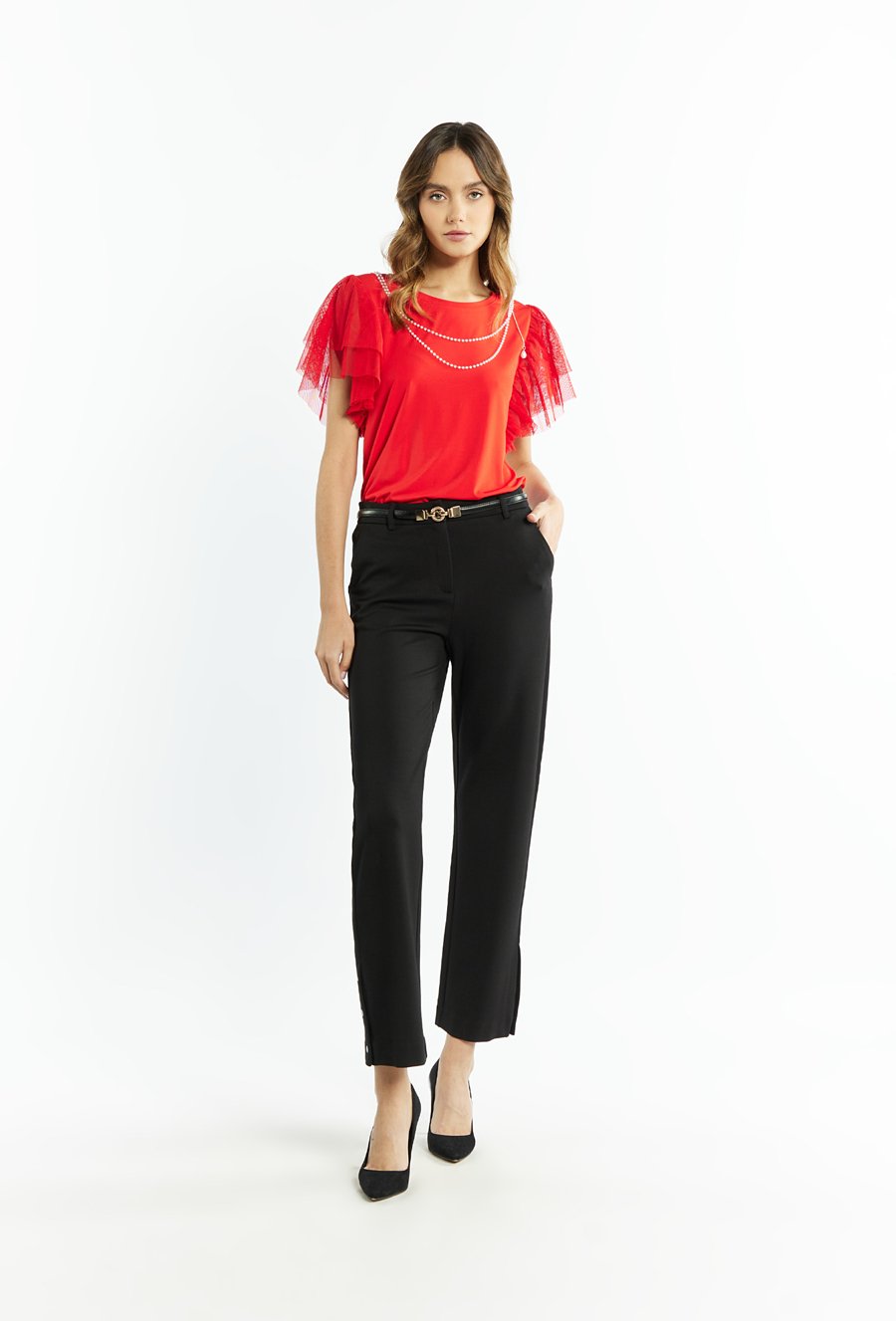 Niebieski spodnie z szerokimi nogawkami i wysokim stanem