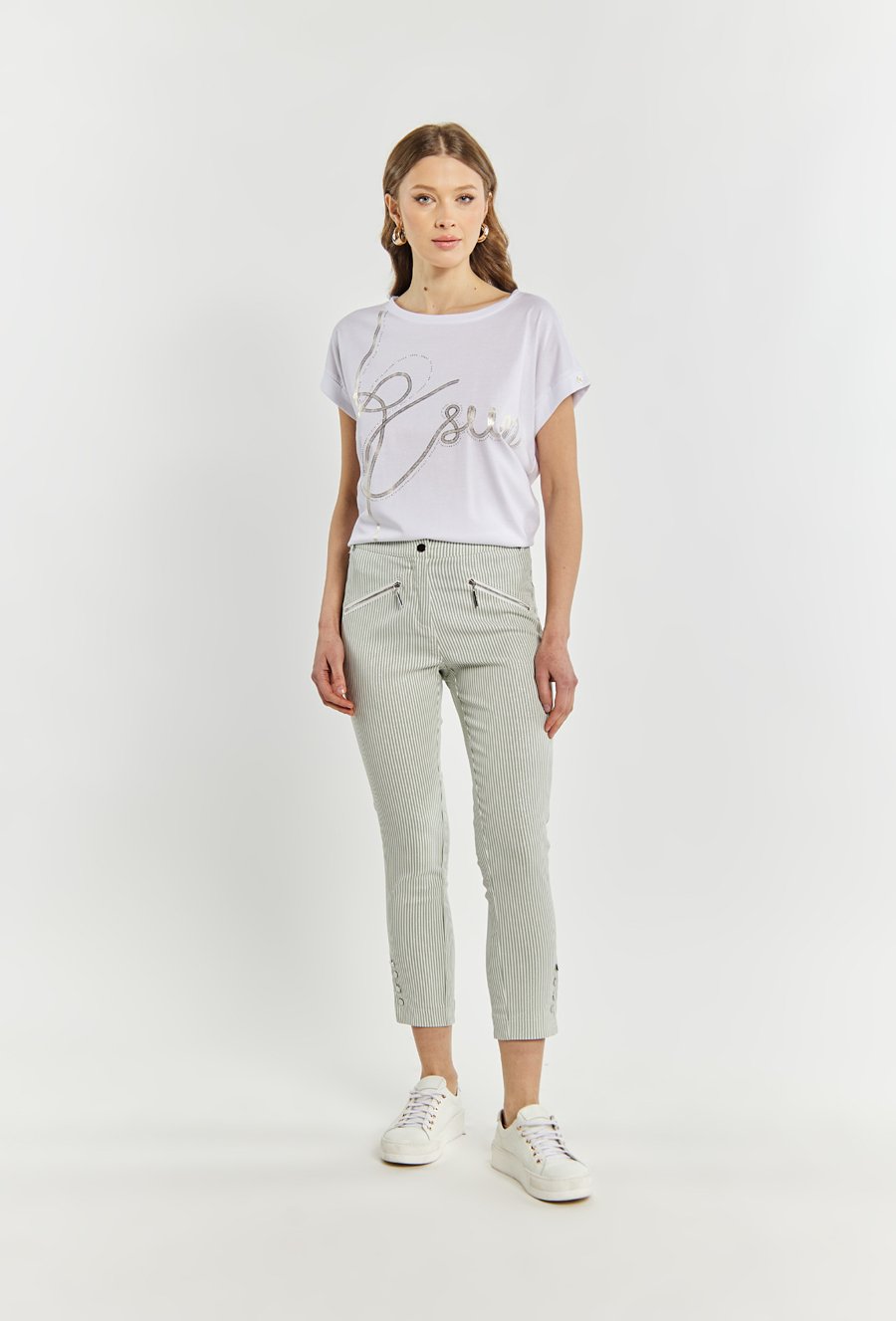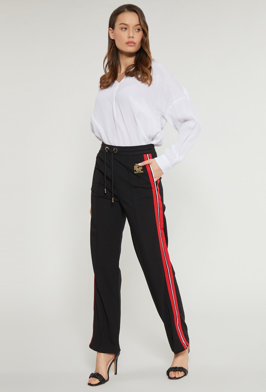Materiałowe spodnie damskie z lampasami