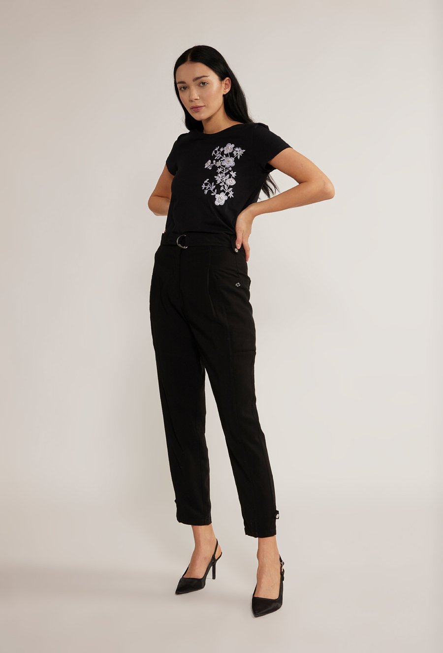 Materiałowe spodnie damskie z cekinami