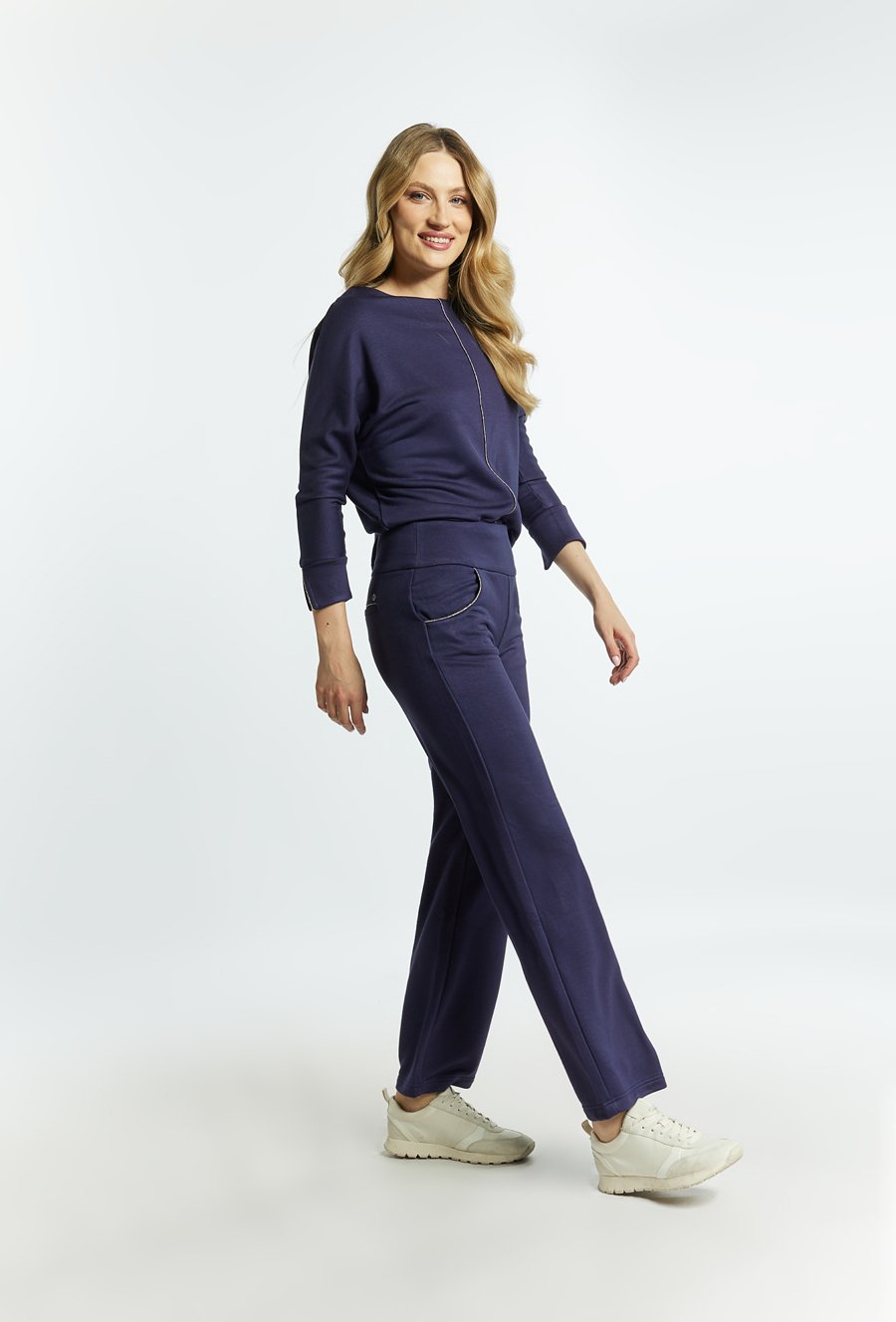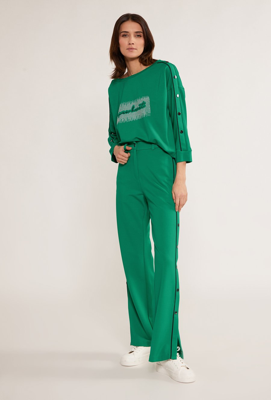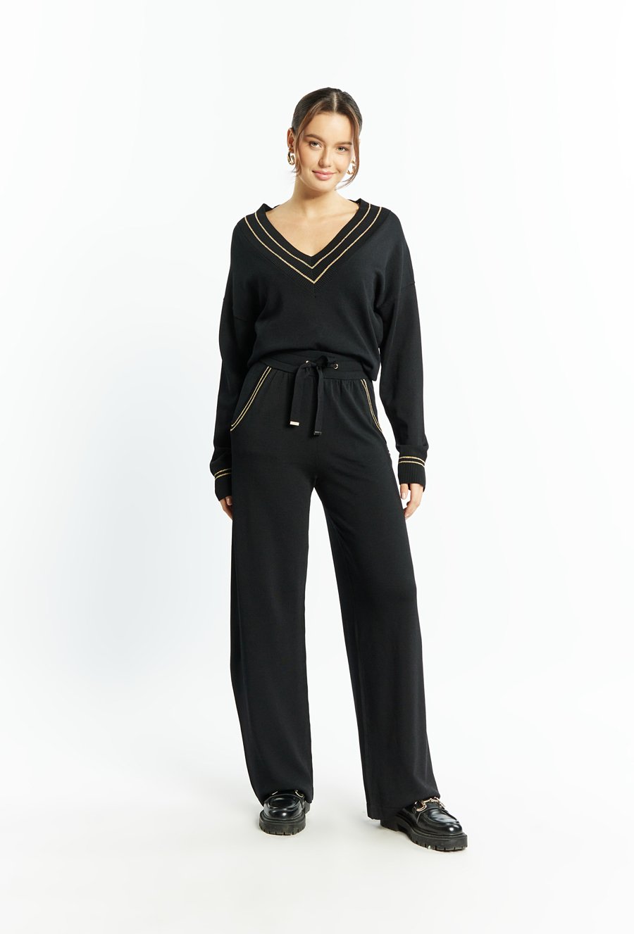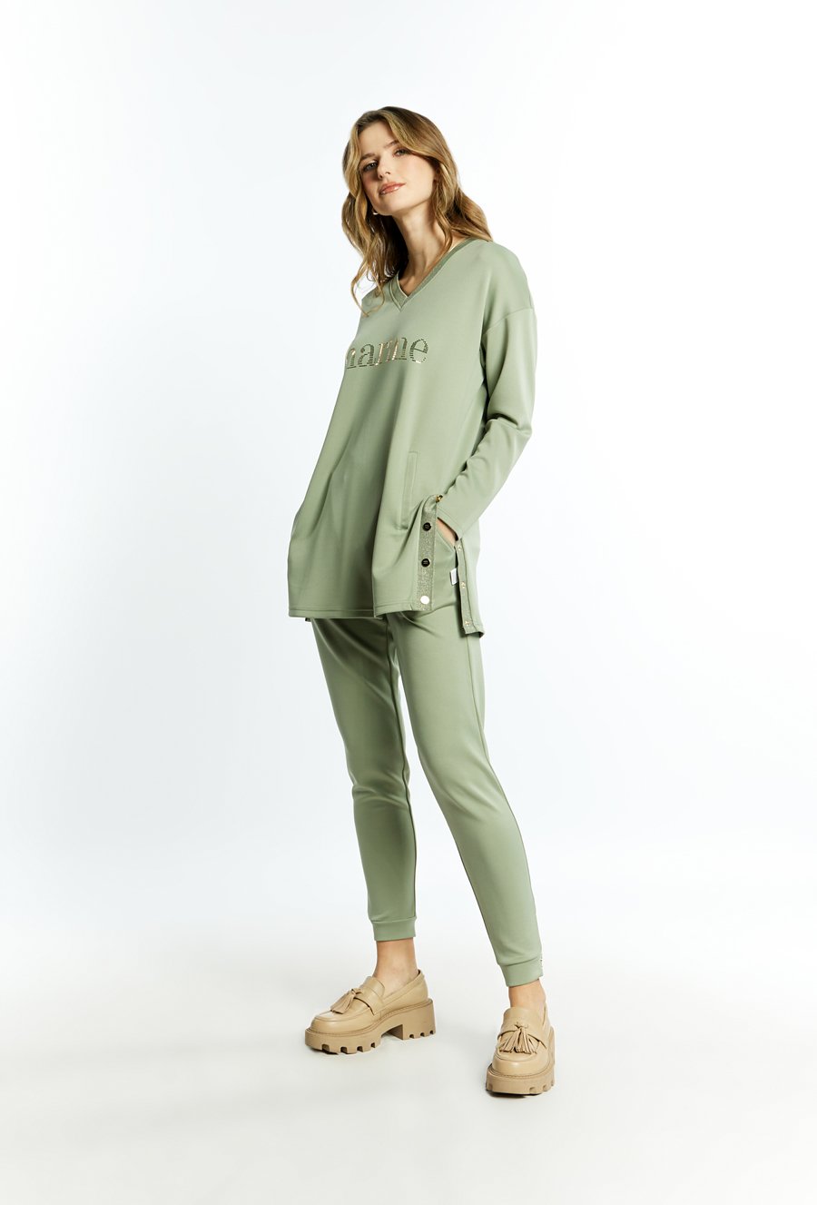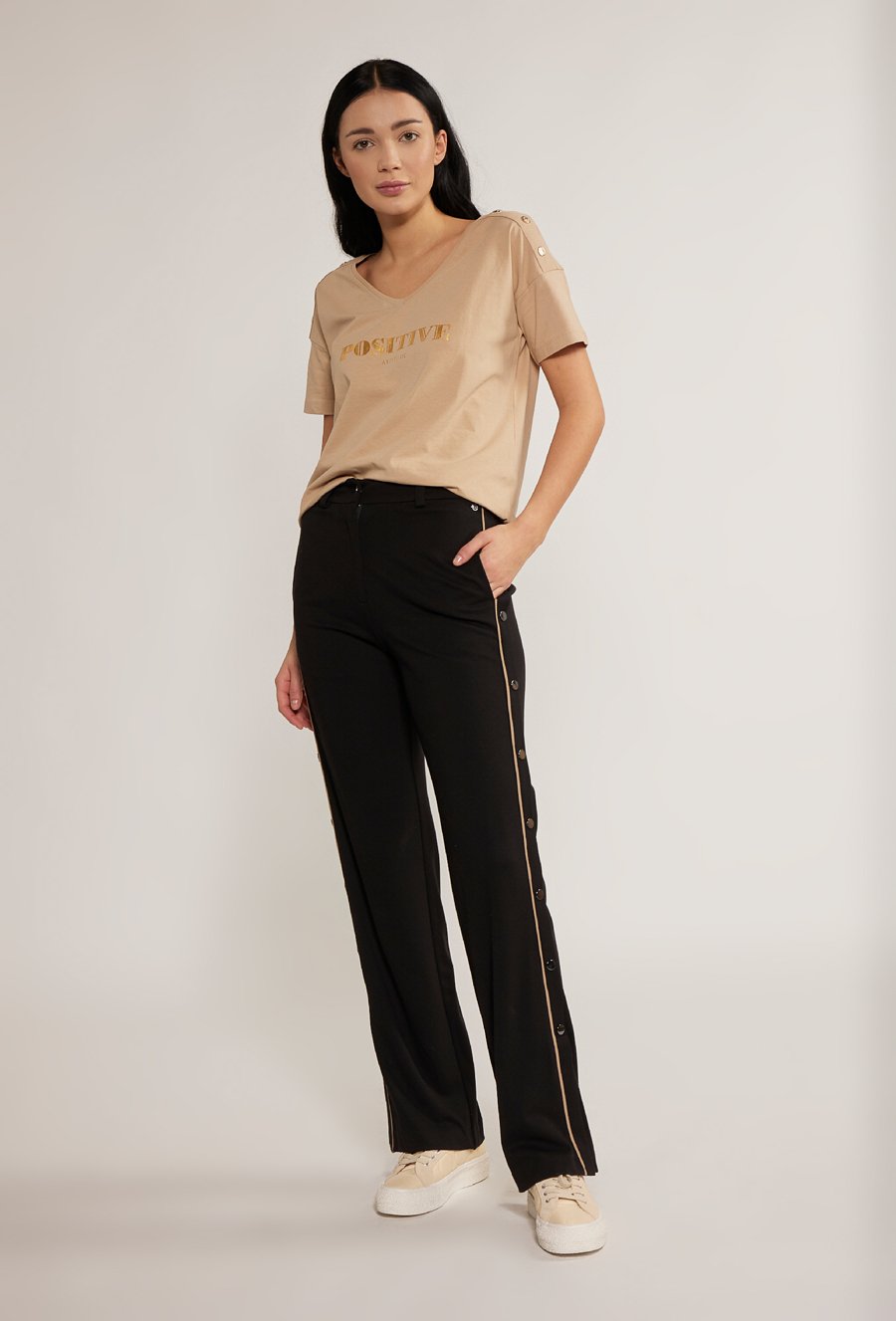 Spodnie damskie z aplikacją po bokach