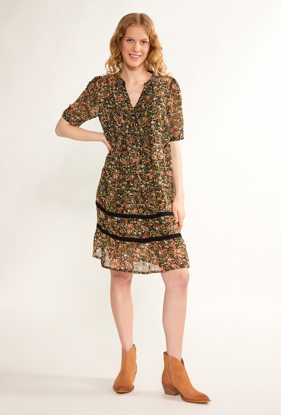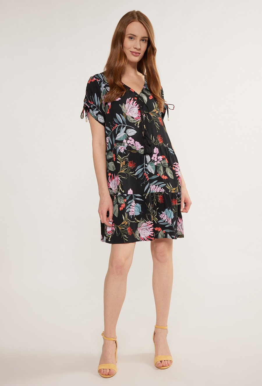 Wiskozowa sukienka z falbaną