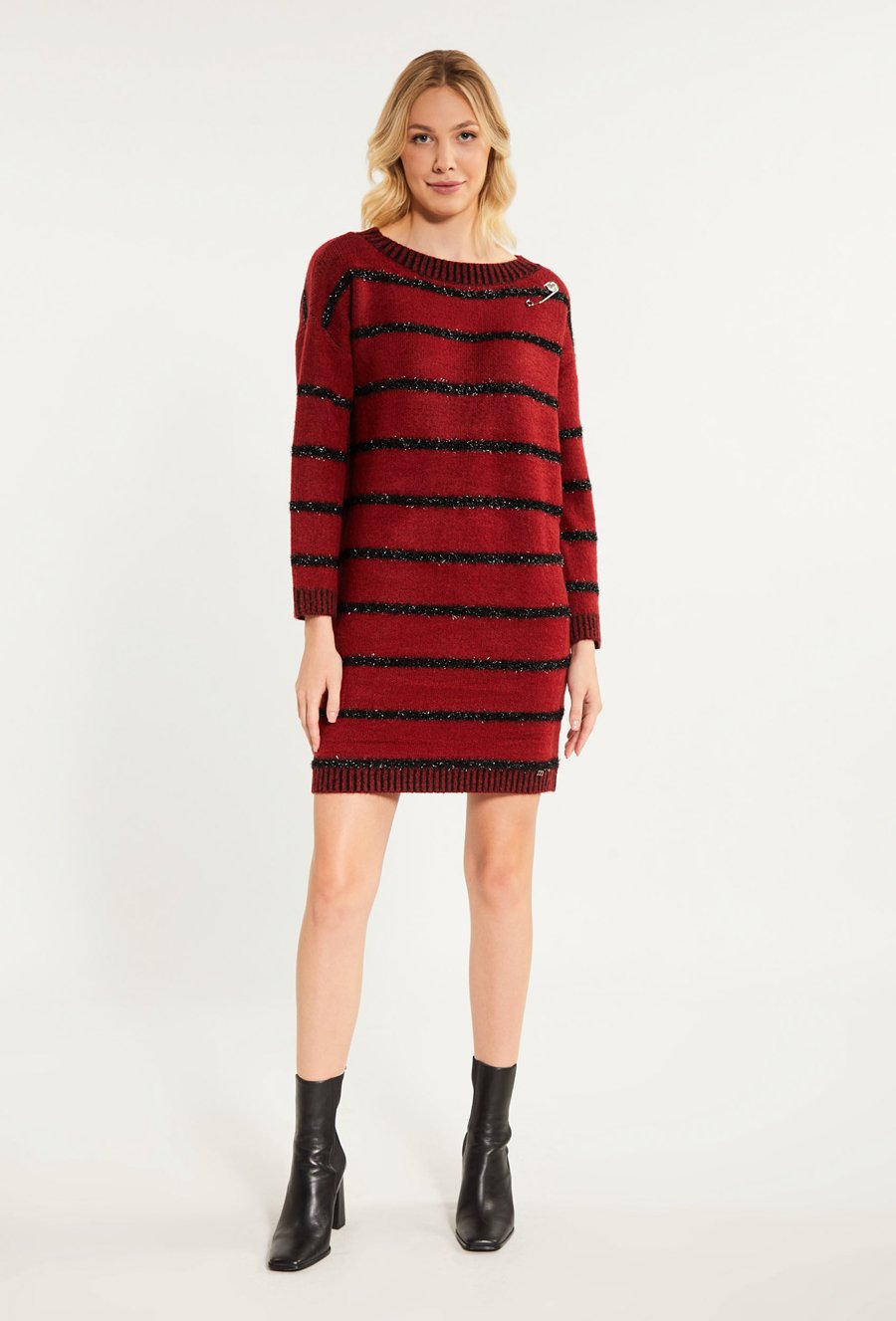 Swetrowa sukienka z wzorem