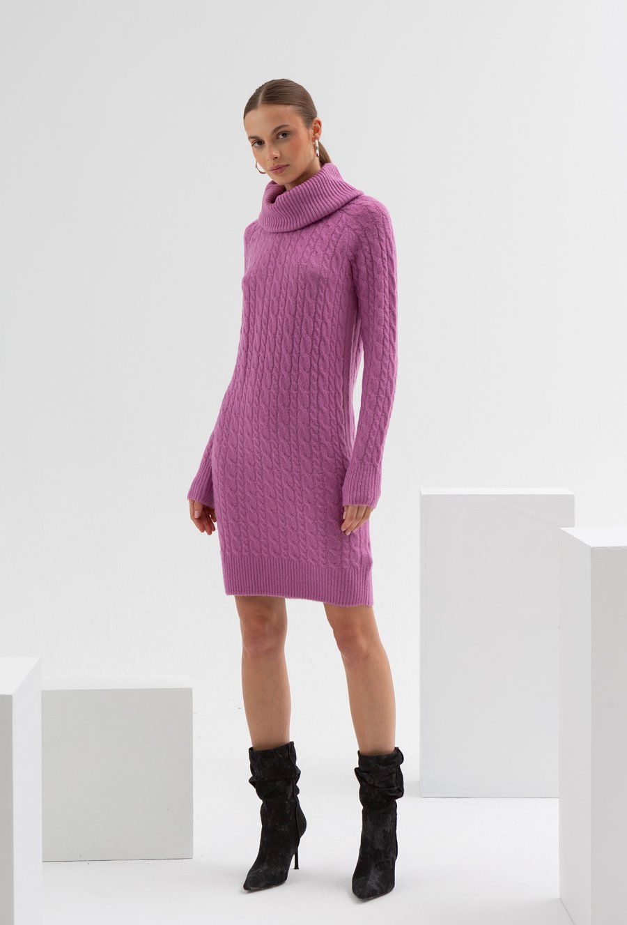 Długa swetrowa sukienka z golfem