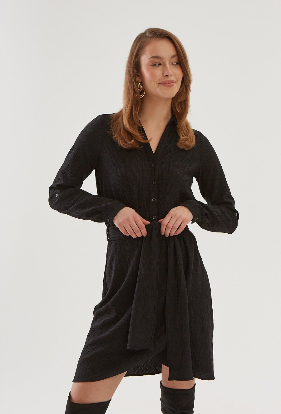 Czarna sukienka z zakładanym dołem