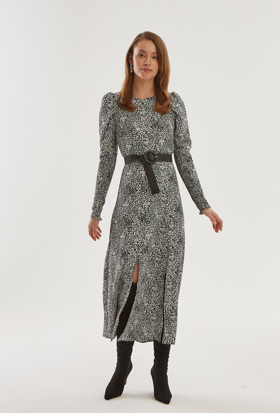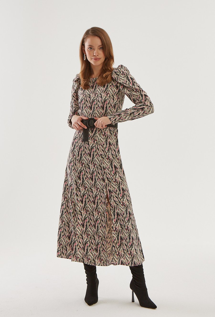 Długa sukienka damska z paskiem