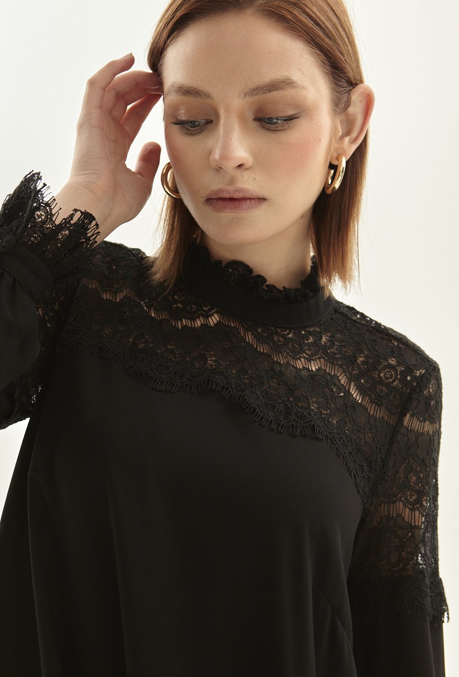 Czarna sukienka z koronkowym panelem