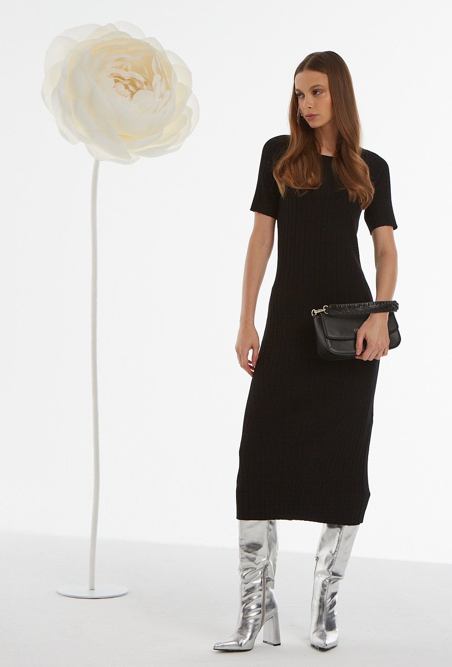 Czarna dzianinowa sukienka z wiskozy