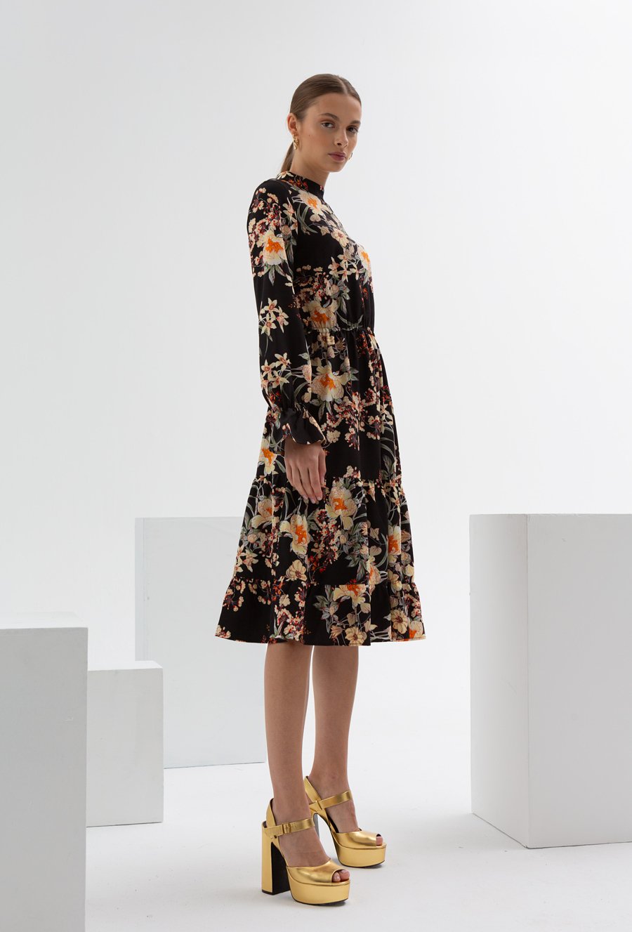 Długa sukienka ze stójką