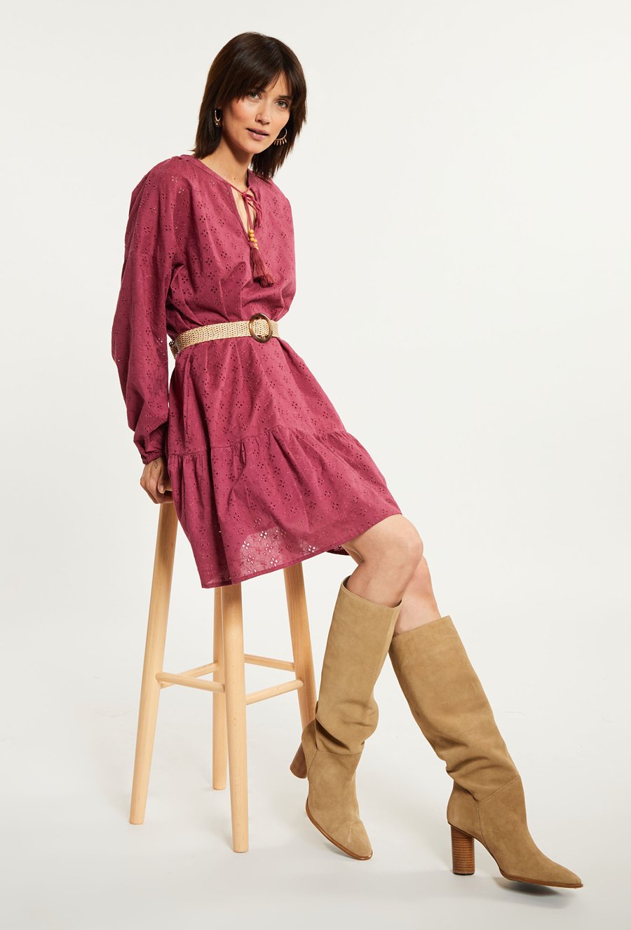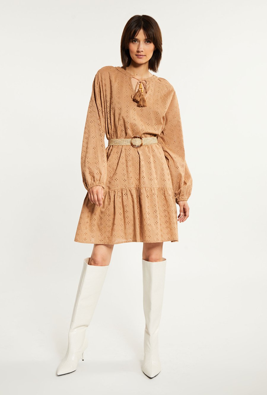 Ażurowa sukienka z paskiem