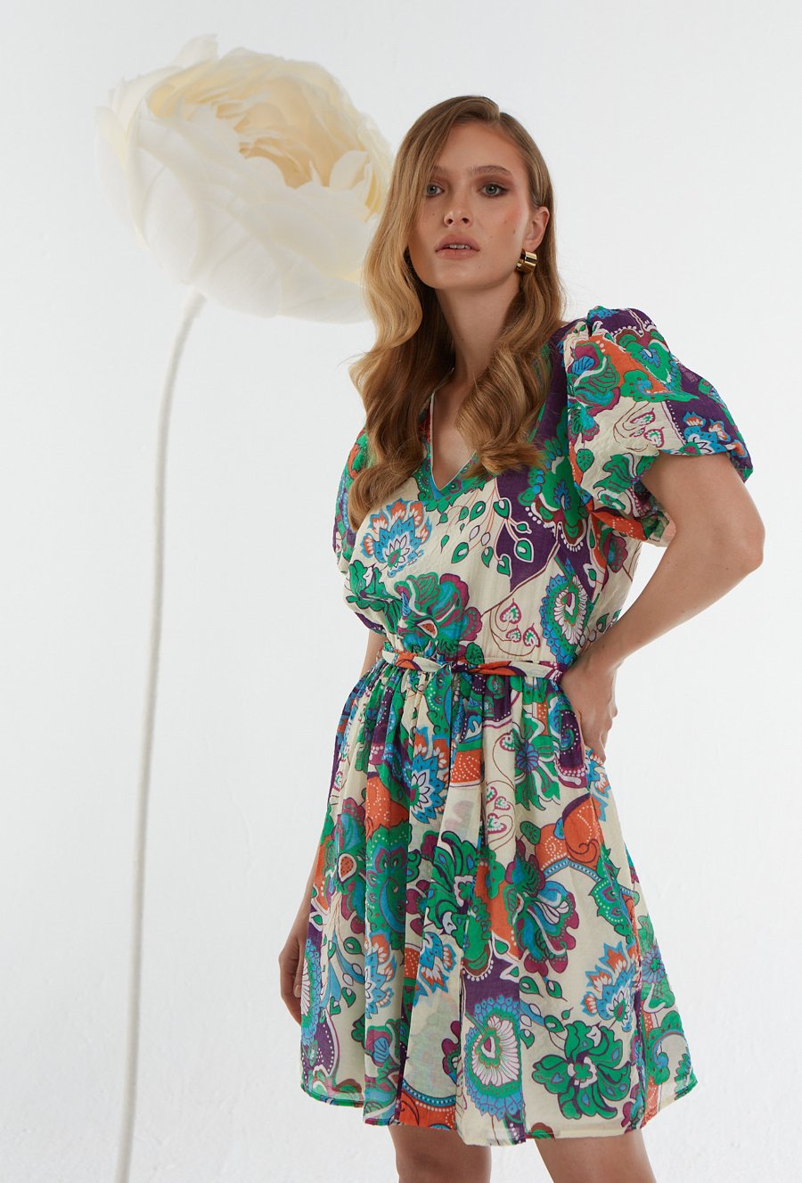 Wiskozowa sukienka w kolorowy wzór