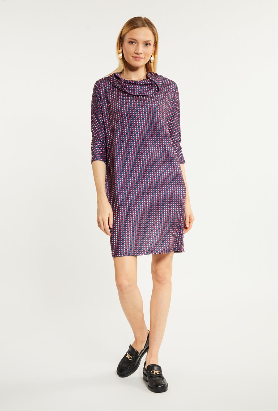 Wzorzysta sukienka damska z golfem