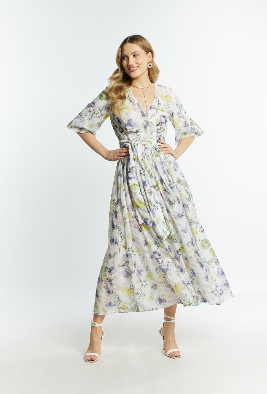Sukienka w kwiatowy wzór z bufiastymi rękawami