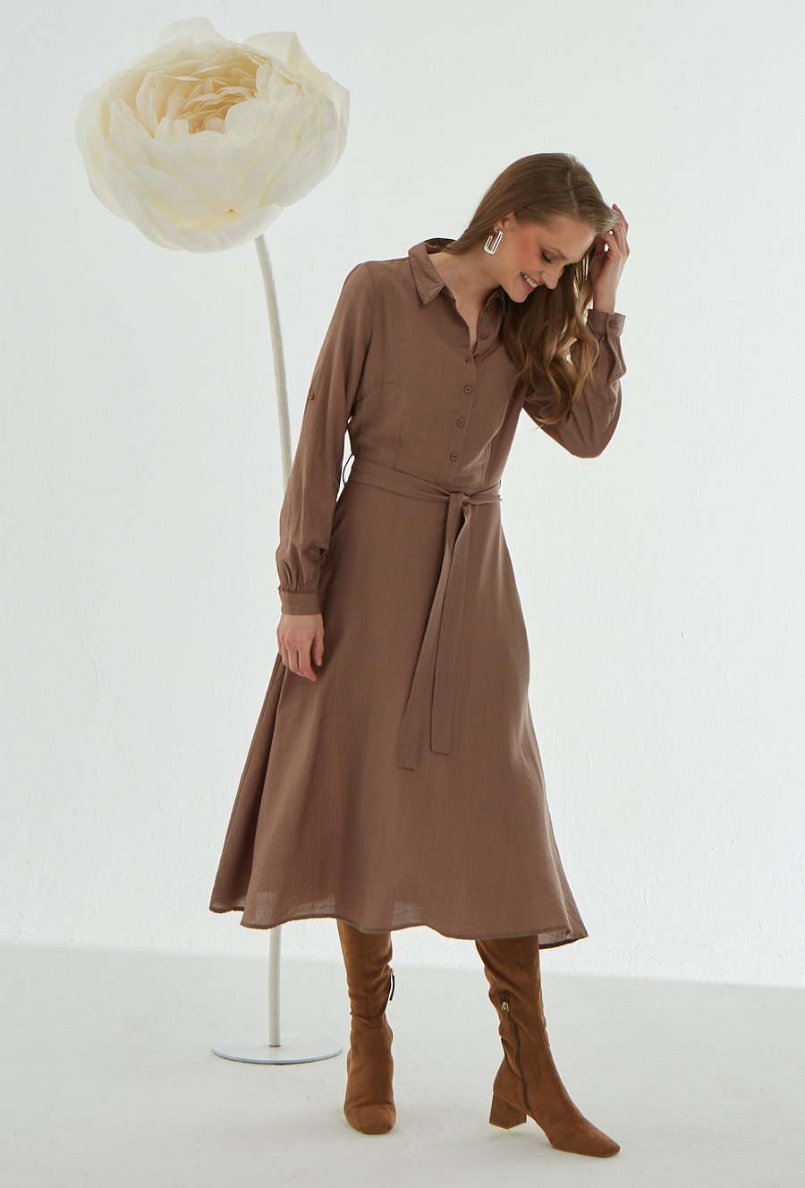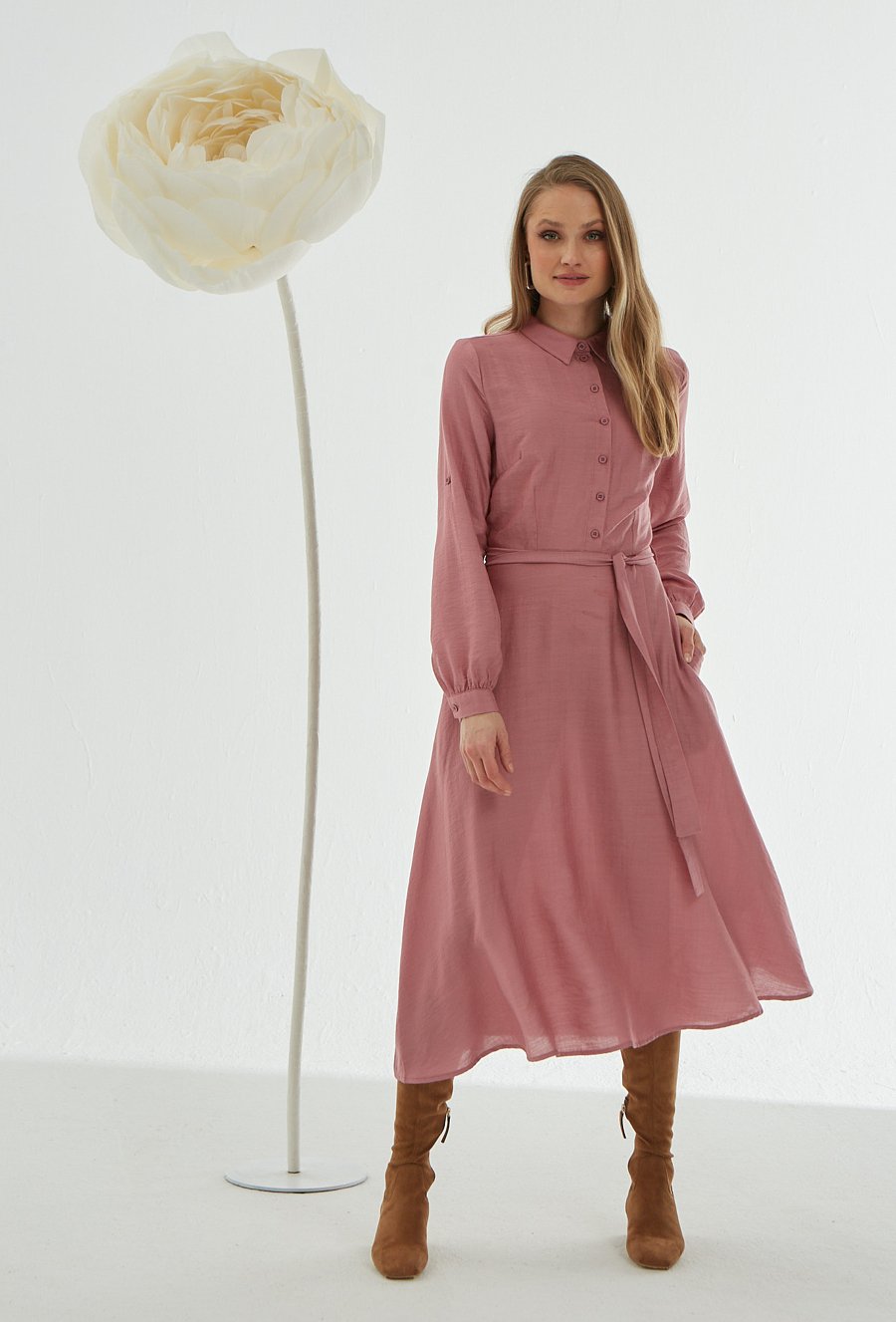 Sukienka midi z lekko rozszerzanym dołem