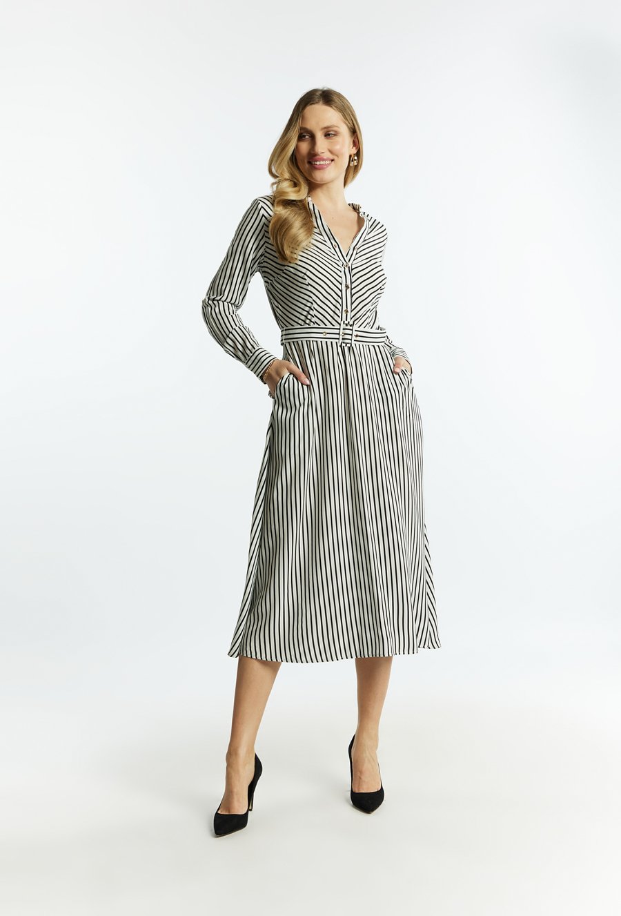 Rozkloszowana sukienka z paskiem