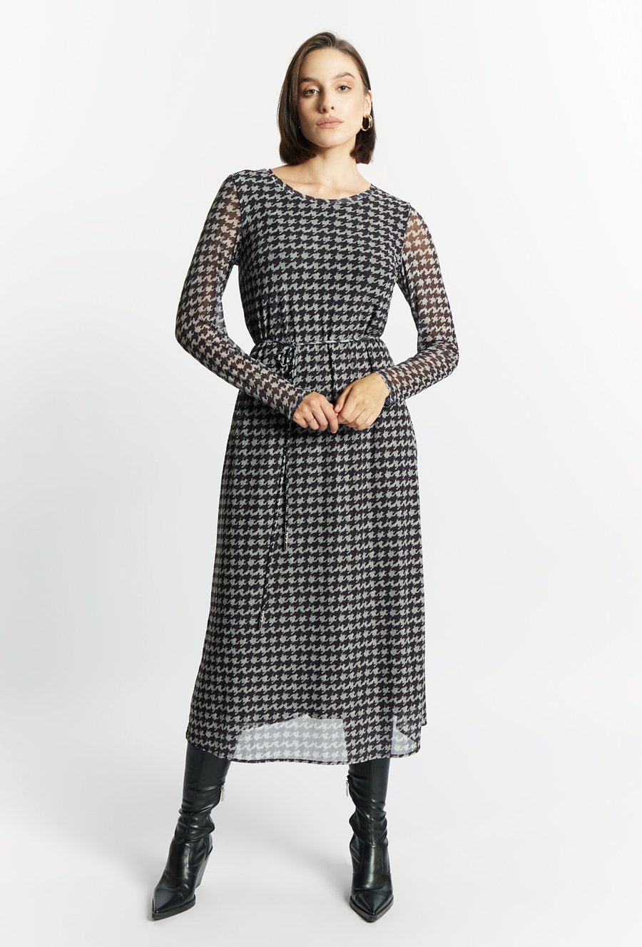 Wzorzysta sukienka z wiązaniem