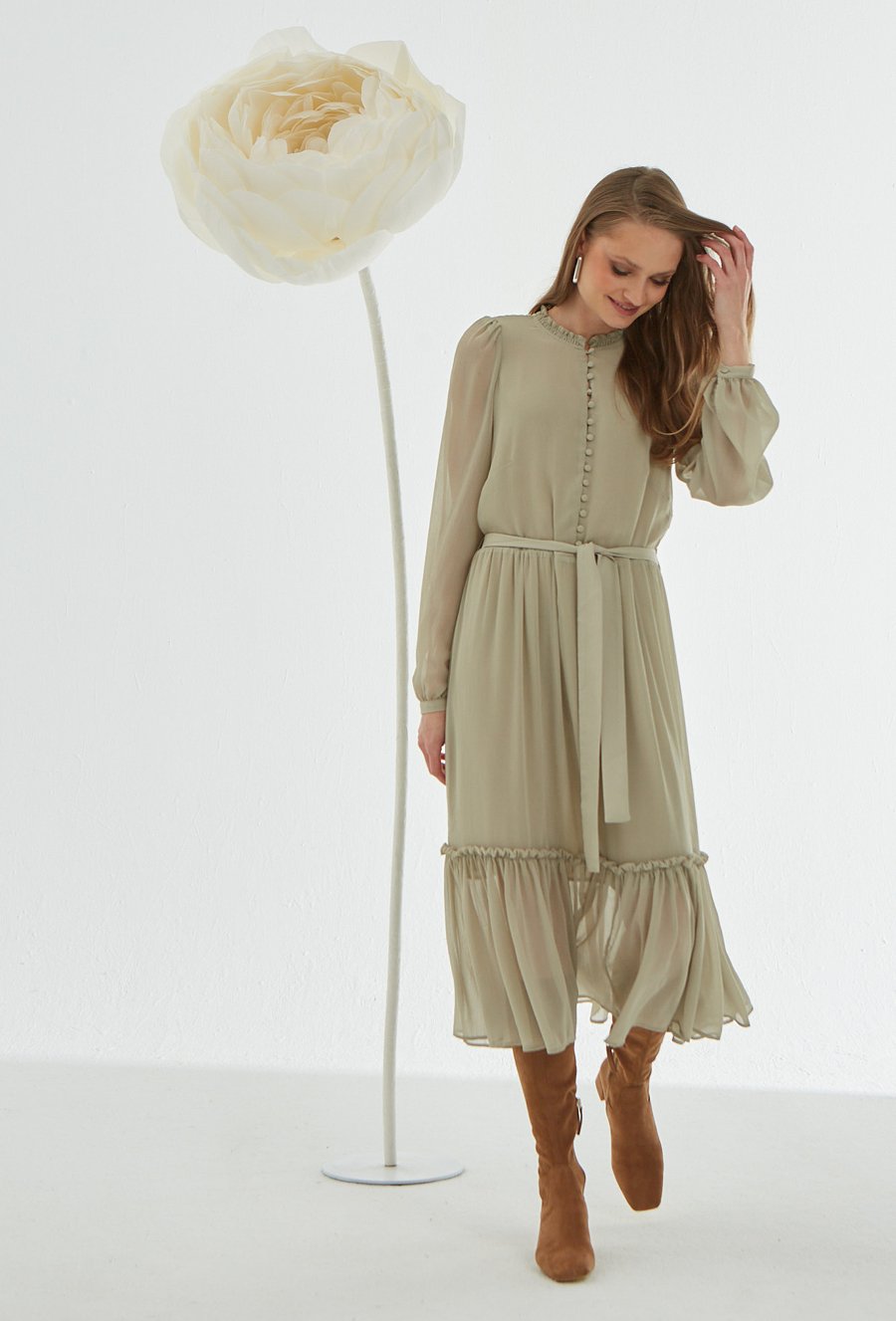 Zielona sukienka ze zwiewnej tkaniny