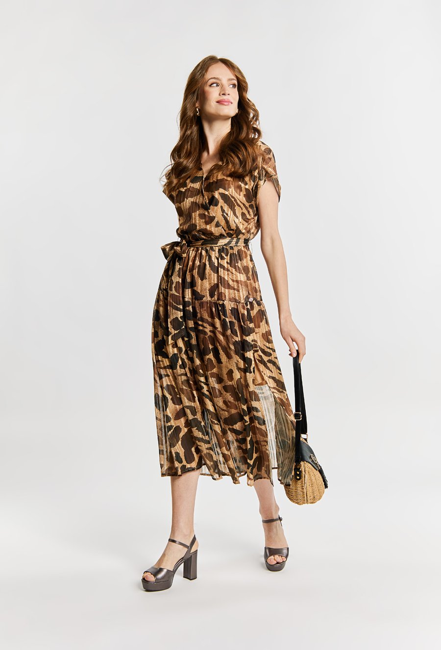 Wiskozowa sukienka z wiązaniem
