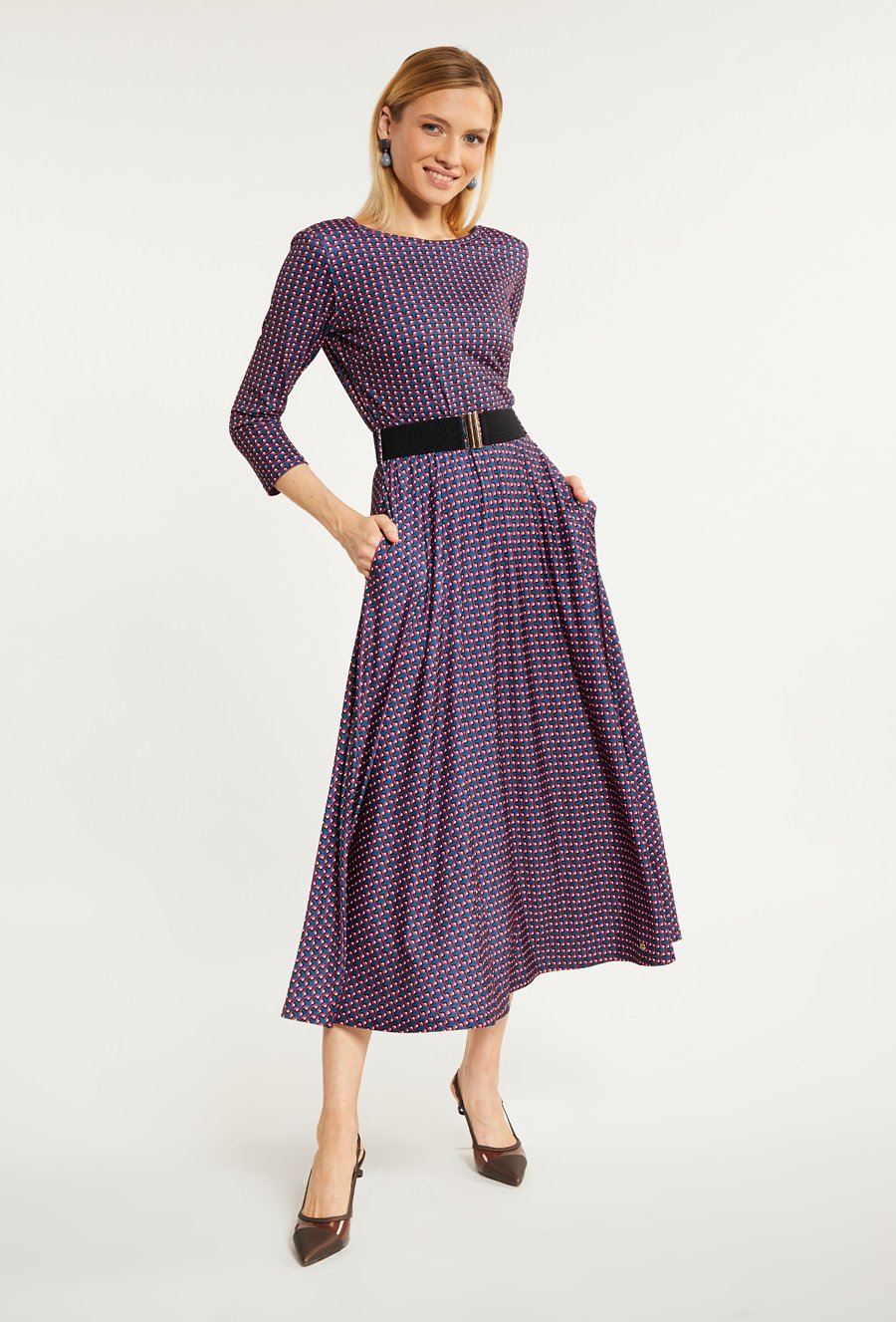 Wzorzysta sukienka damska midi