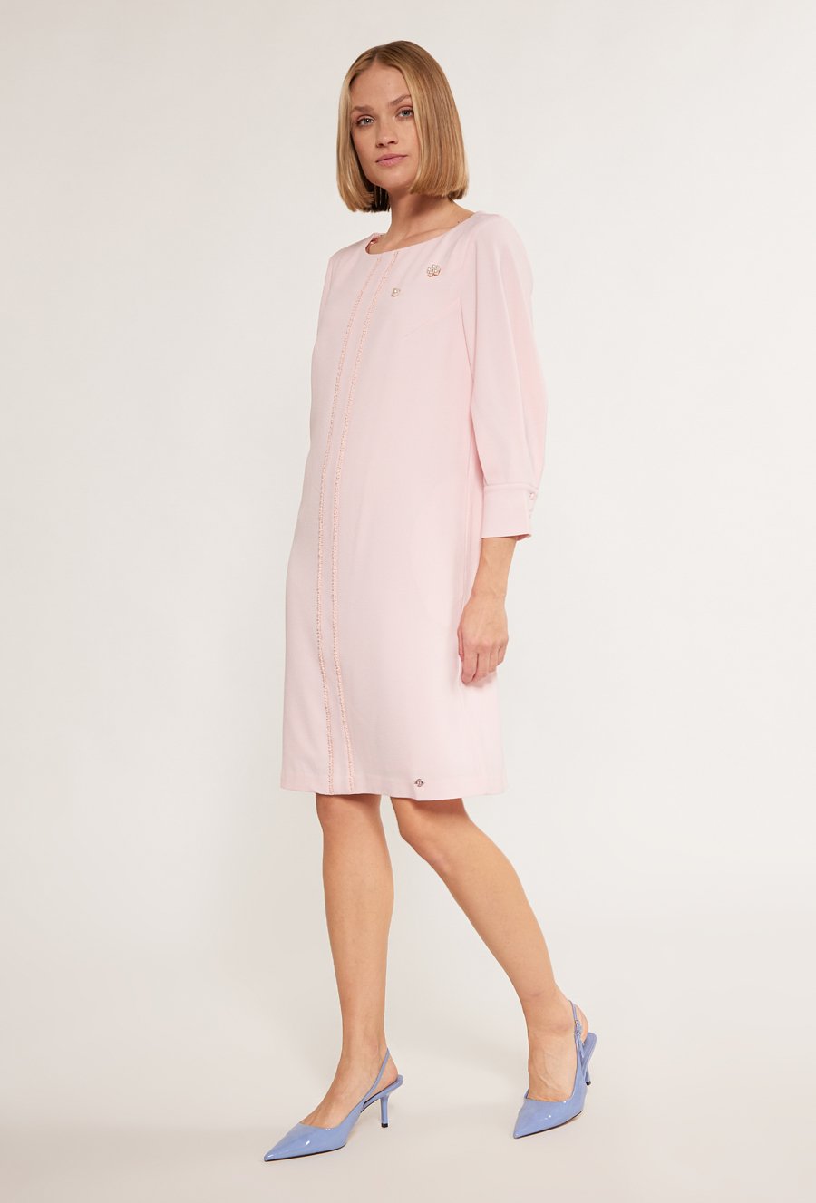 Wizytowa sukienka damska z aplikacją na rękawach