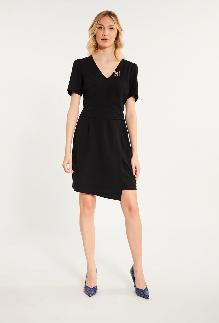 Wizytowa sukienka damska z broszką