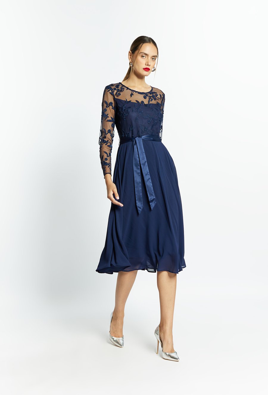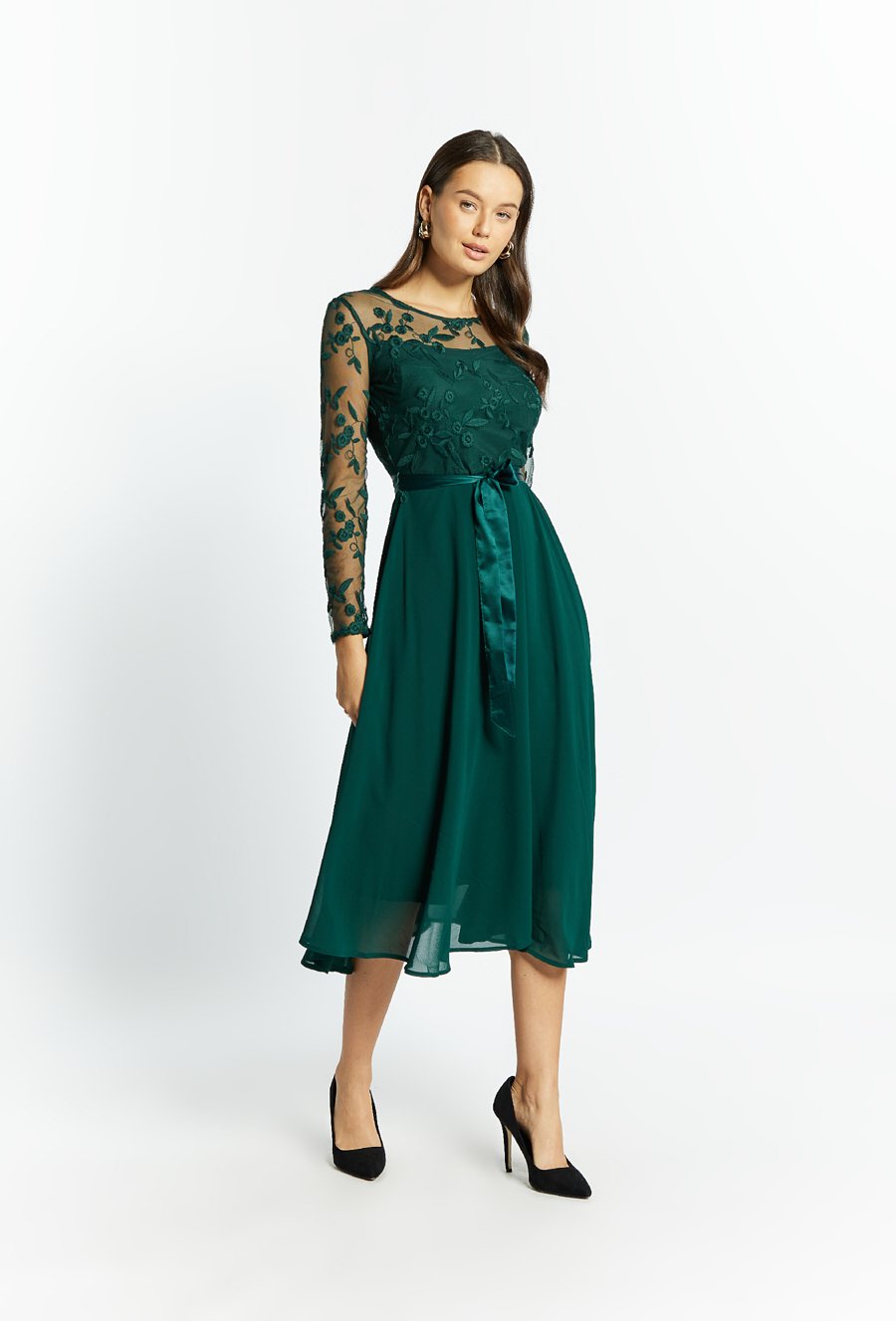 Sukienka Maxi z dekoracyjnym kwiatem 3D